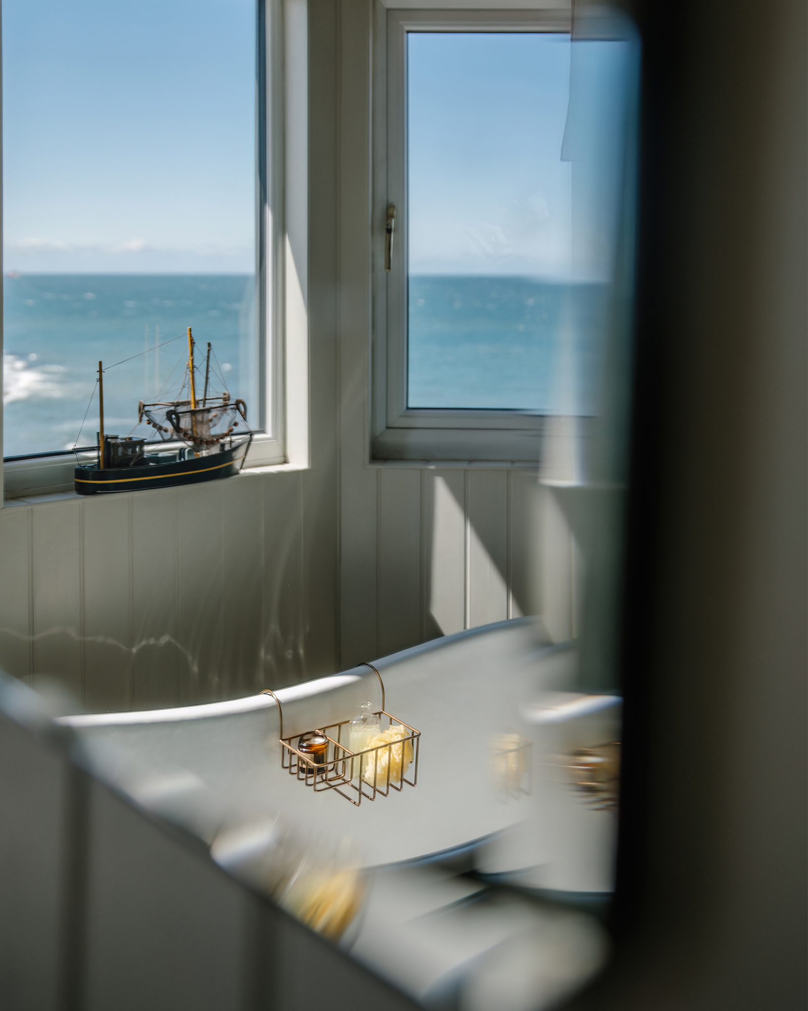 Time flies, it seems, when you’re breathing the bones of an architectural beauty back to life – not least given the winding journey to finding both the project and the rhythm they had for so long craved. Caroline and her husband had returned from London a few years earlier, longing for more space and a slower pace of life after the birth of their daughter. “Once we’d narrowed down our ideal location, I was on Rightmove in a hot minute,” she laughs. “My husband had just one stipulation: he wanted to be able to see the sea. I was happy to oblige. Amazingly, this was the very first house I spotted online, so it felt like fate.”