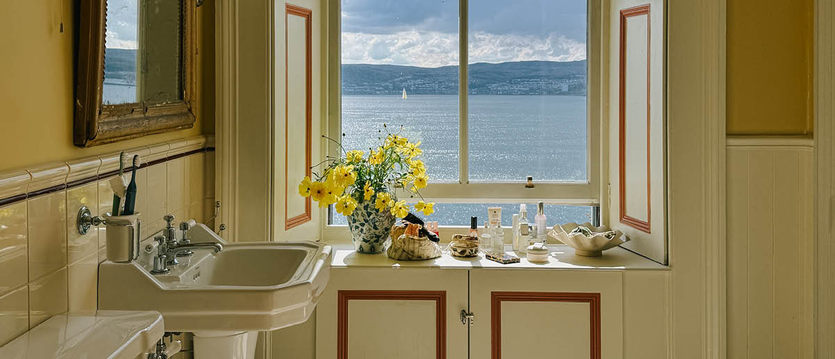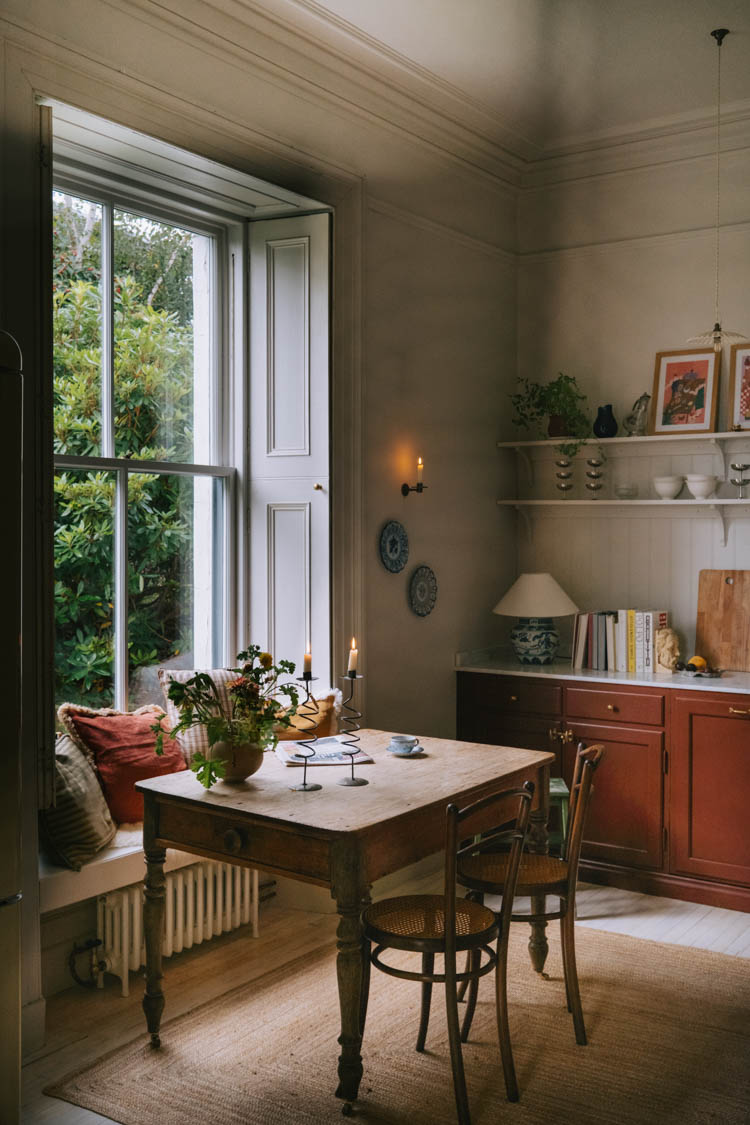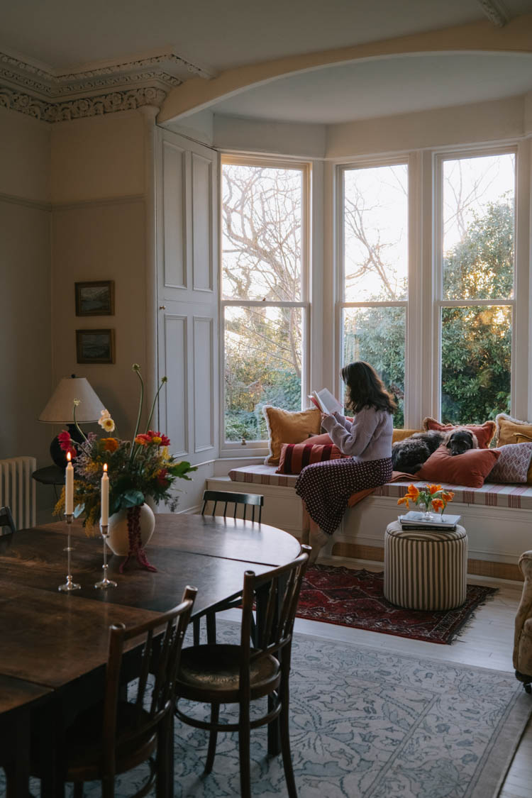 That refuge from the wild, woolly weather often takes the form of her favourite window seat in the dining room – a quiet nook made for curling up with a book, a pot of tea and the ever-shifting pull of the sea beyond.