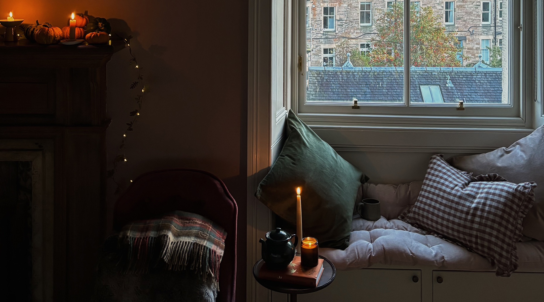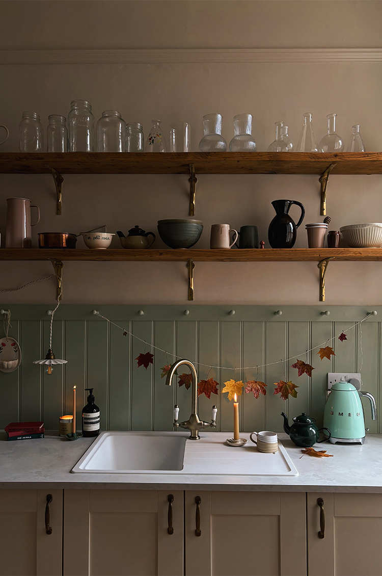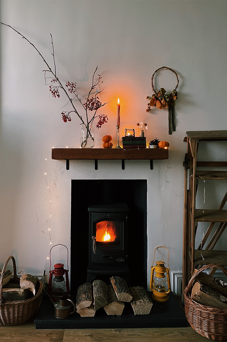 Now, as autumn beds in, Rosie is busy constructing a cosy haven, creating ambience with tactile textiles (‘I love getting them out of storage and airing them, it’s like meeting old friends!’), fairylights, and warm lighting, making her own beeswax and soy wax candles where possible, a favourite seasonal ritual.