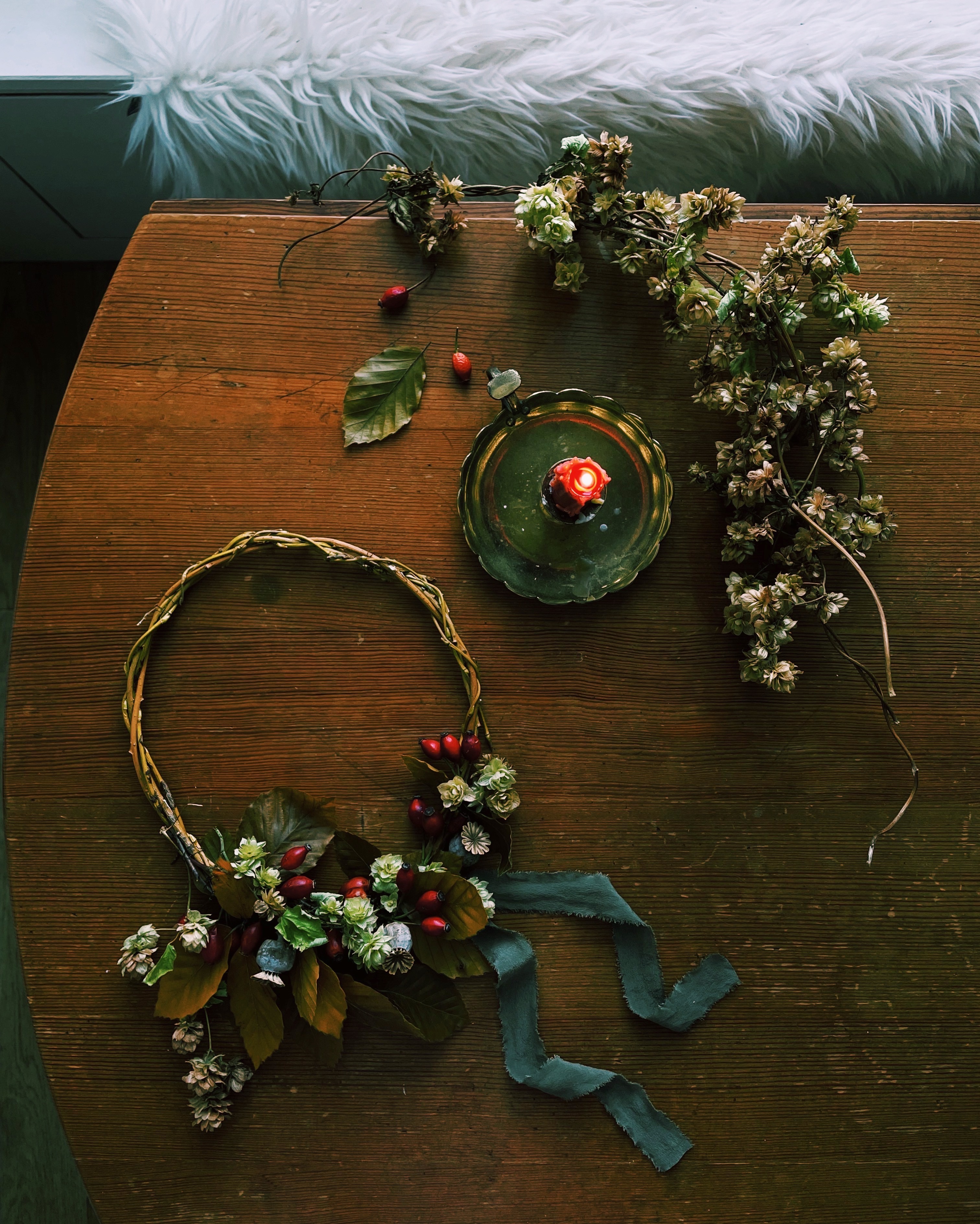 And there, she will sit, giving thanks for the seasons and putting into practice her autumn rituals. ‘Every year, I make an autumn wreath to display in the kitchen or on our front door, and in winter I love to make pinecone garlands or a wintery swag. It’s a lovely reminder of ongoing life in the darker months,’ she says. And, as autumn gives way to winter, she will soon be found gathering up armfuls of greenery to decorate the house and spending her days in her other favourite pastime: making homemade gifts to bestow upon loved ones.