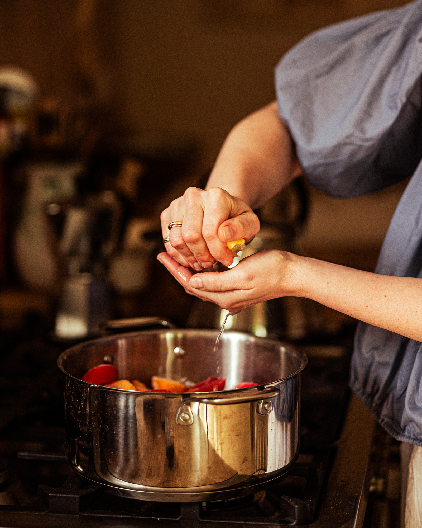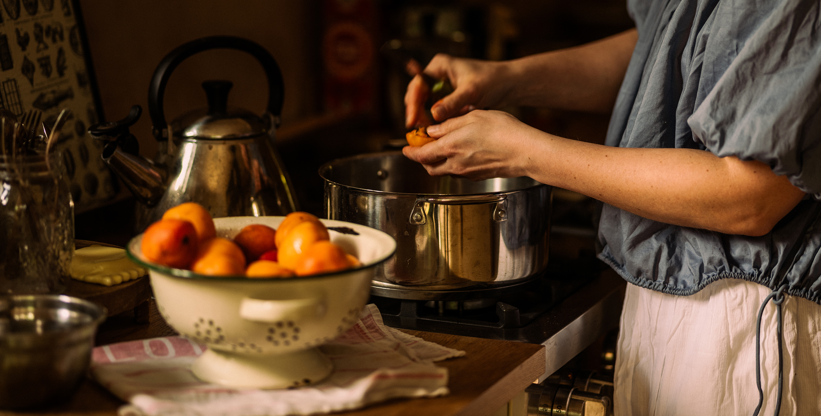 1. For the jam, put the apricots and lemon juice into a saucepan over a medium heat and cook for around 30 minutes (keep the lid on if your apricots are quite hard, as it will help them soften). Stir regularly and squash them with a wooden spoon to help release their juices.