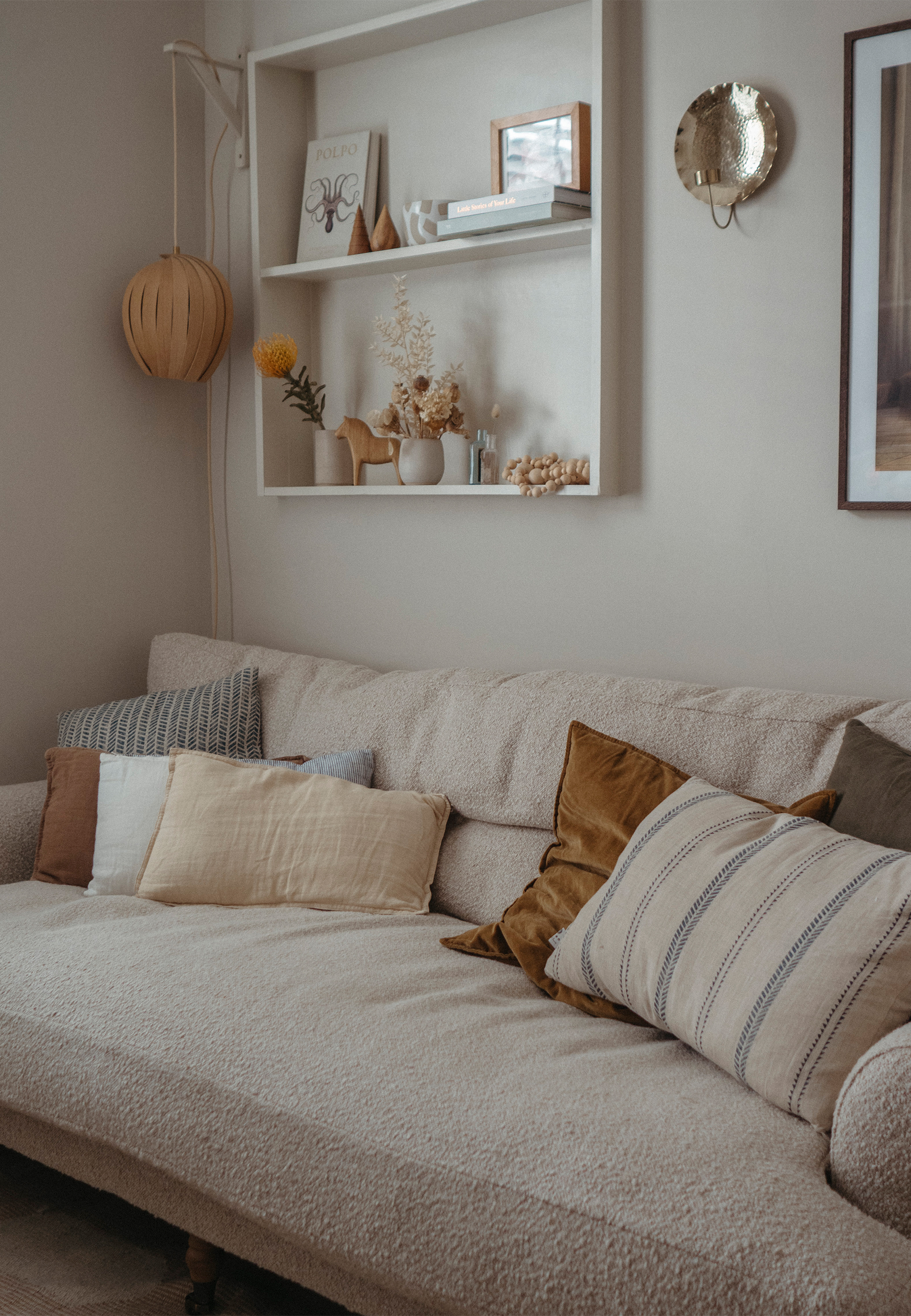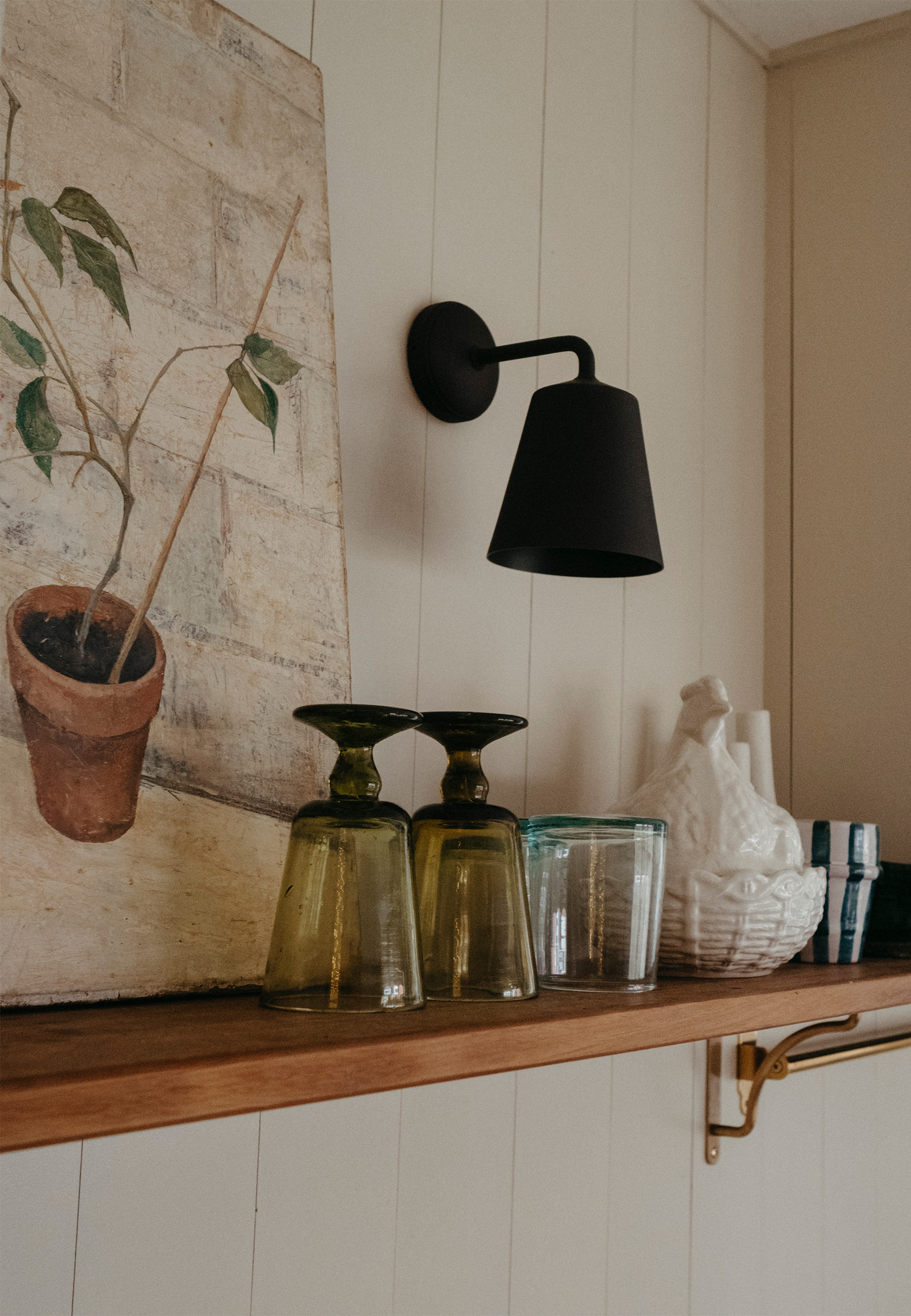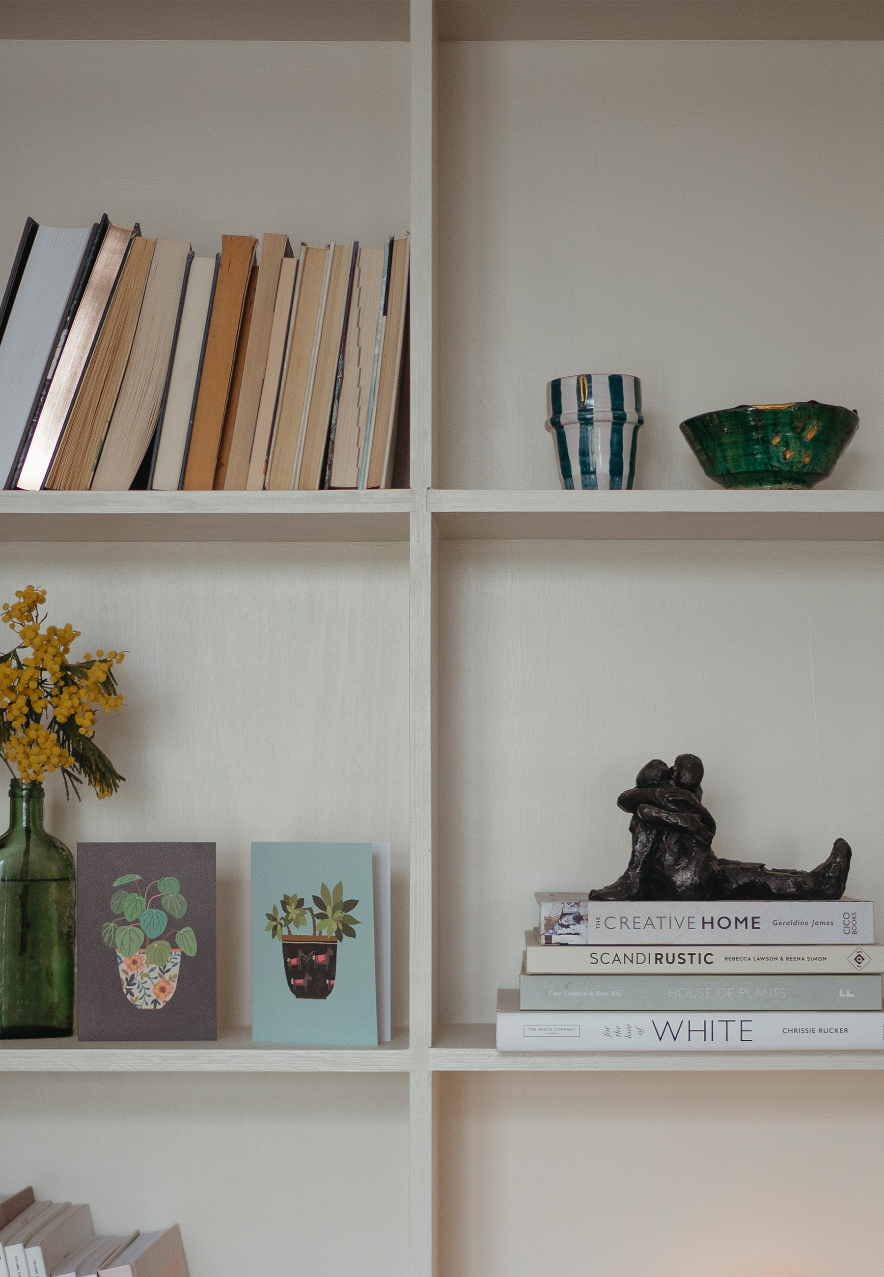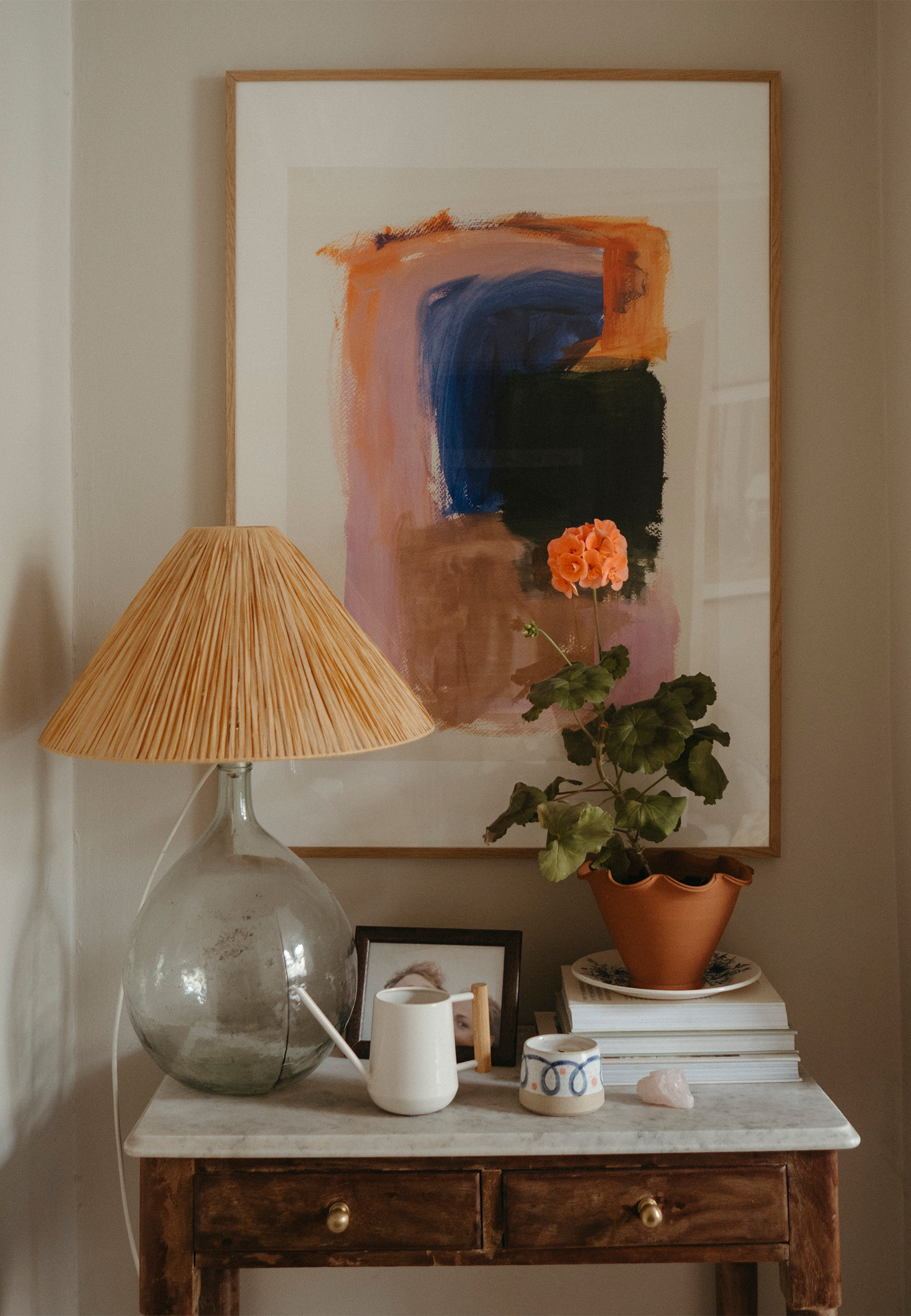 ‘I love anything thrifted,’ she says. ‘I think they add so much character to the home. A bargain Facebook Marketplace find is really the best. My partner Dan has a workshop where he restores furniture and mirrors and sells them on, so we have a constant stream of lovely things coming through the house. The small marble top table in my living room is a favourite piece. We bought it from a lady in Bath for £30. It was covered in pale grey chipped paint. Dan stripped it back and bought the wood back to life and changed the handles to small brass knobs. It’s beautiful.’