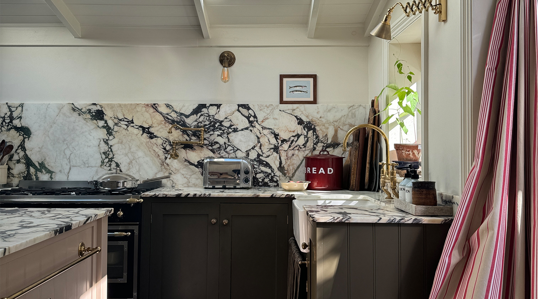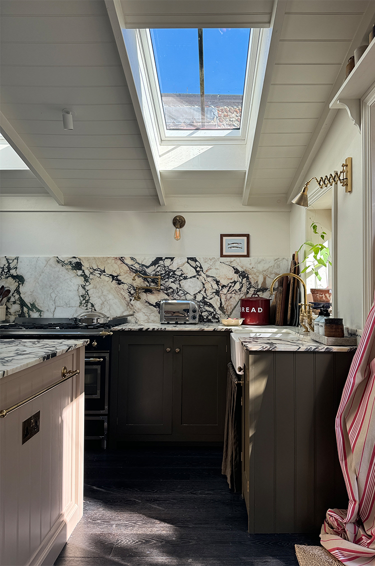 The family’s quietly beautiful life by the sea enclosed within its beloved walls has resonated deeply with Sam’s many thousands of followers on Instagram, where she resides under the @the_flint_house alias. It is a moniker that neatly alludes to the pervading flint from which her house is constructed and which, she says, has informed many of her decorative choices. As she explains, ‘If you pay close attention to the stones themselves, there are so many beautiful shades of pink, putty, olive, sage and tan. My colour scheme was already there! I love the style of traditional New England seaside cottages or Scandinavian beach houses, so whitewashed panelling became a key influence. I didn’t want it to be a seaside pastiche, but we went for it in the kitchen and I love how the panelling brings a subtle textural element to the new space.'