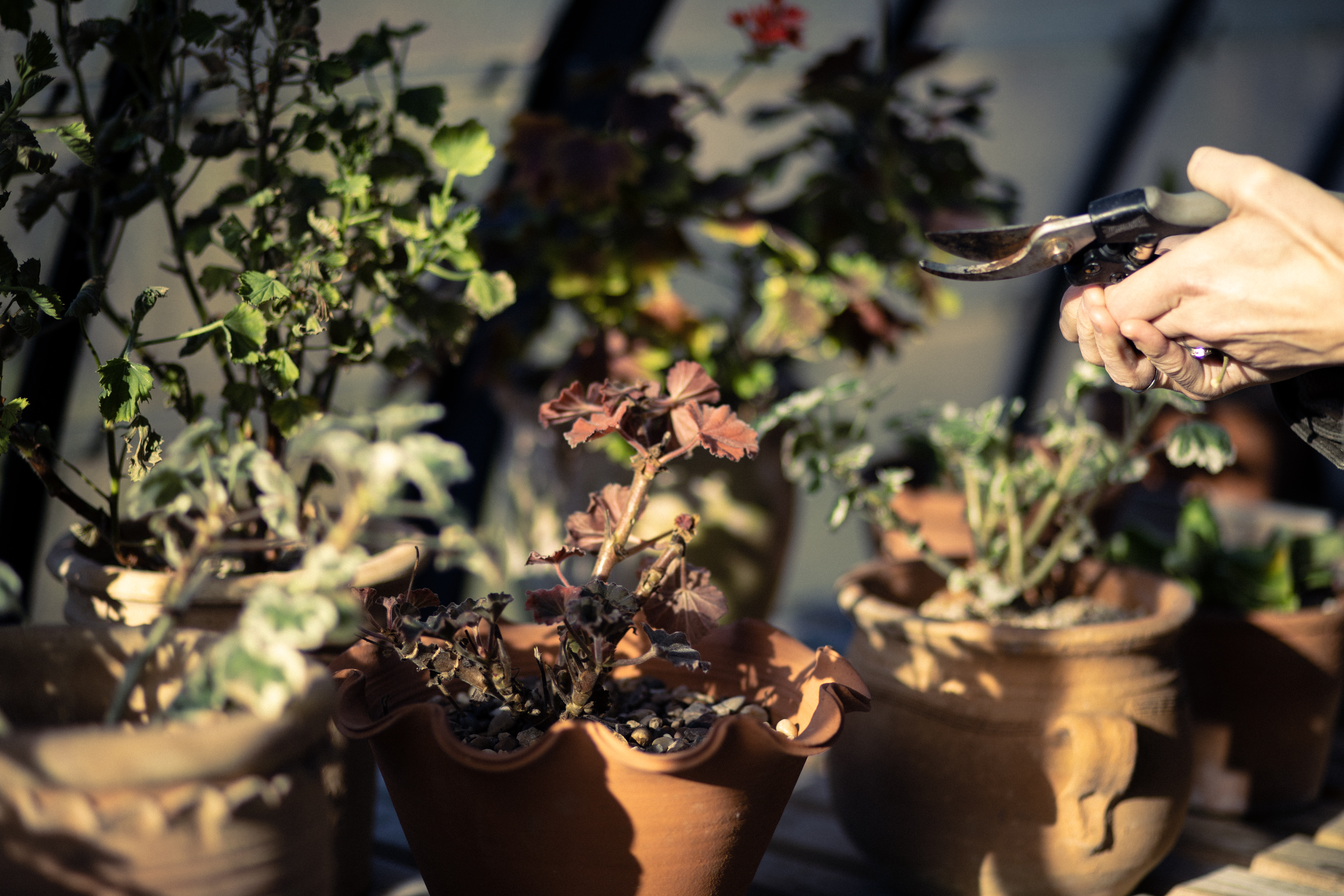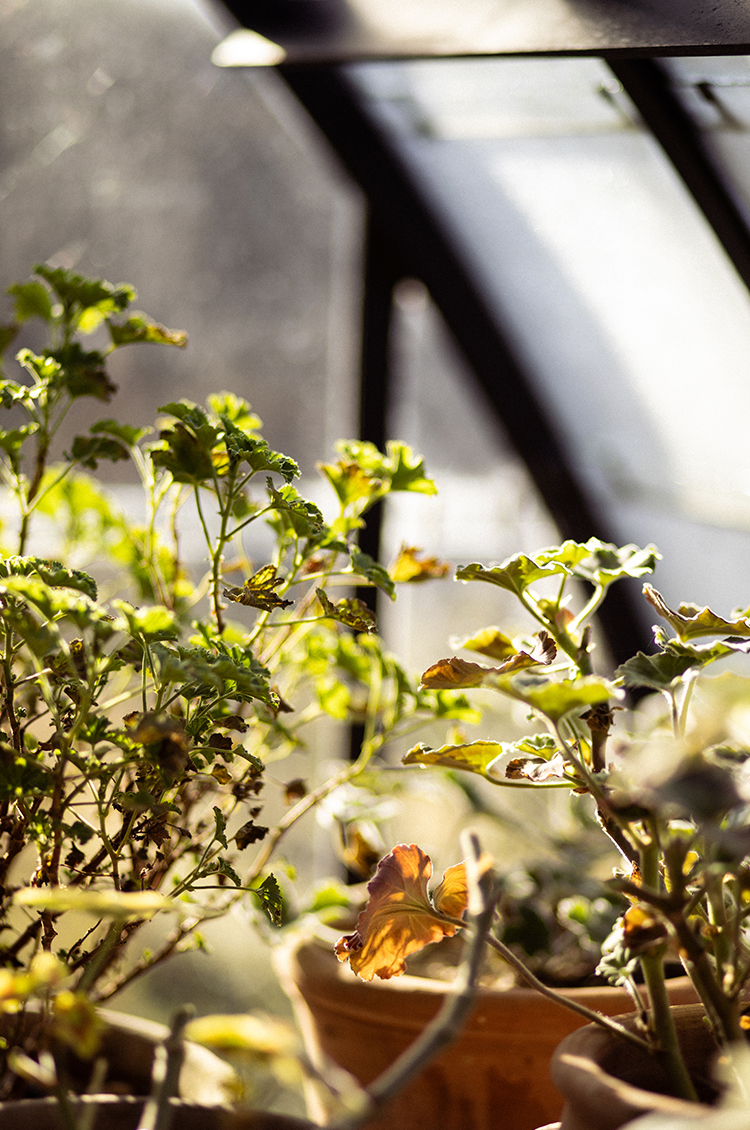 We are finally beginning to emerge from the austerity of the winter garden with February bringing with it the first whispers of spring. Much as I enjoy the sepia tones of the bleak midwinter, it really is gladdening to see life stirring again – for now, most evidently in the greenhouse with my geraniums and pelargoniums. It may be cold outside, but it’s wonderful to bask in the rays when they do stream through the glass, warming me and my plants, safe from the temperatures outside.