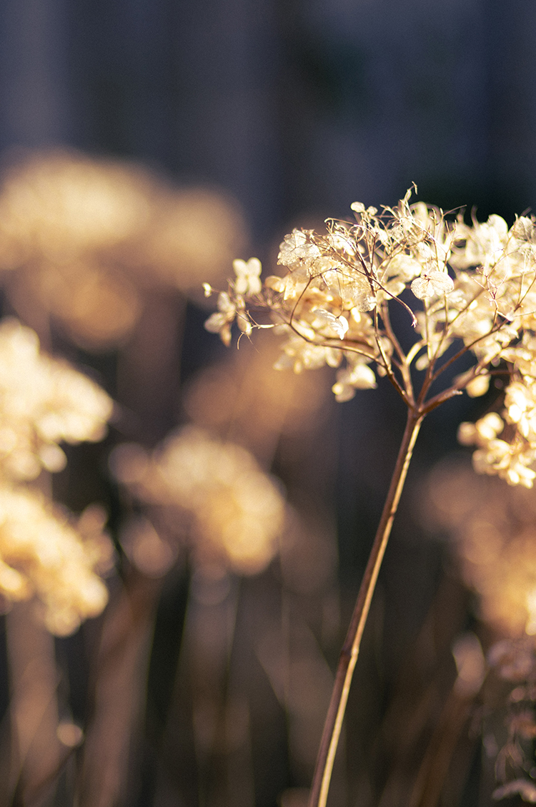 Very few of last year’s seasonal plants are still standing, not least after a battering from a succession of howling gales last month. But a handful of a Hydrangea Annabel heads have valiantly clung on – at least until the big cut back. For now, though, they remain so beautiful in their skeletal fragility, especially when the sunlight catches them just so.