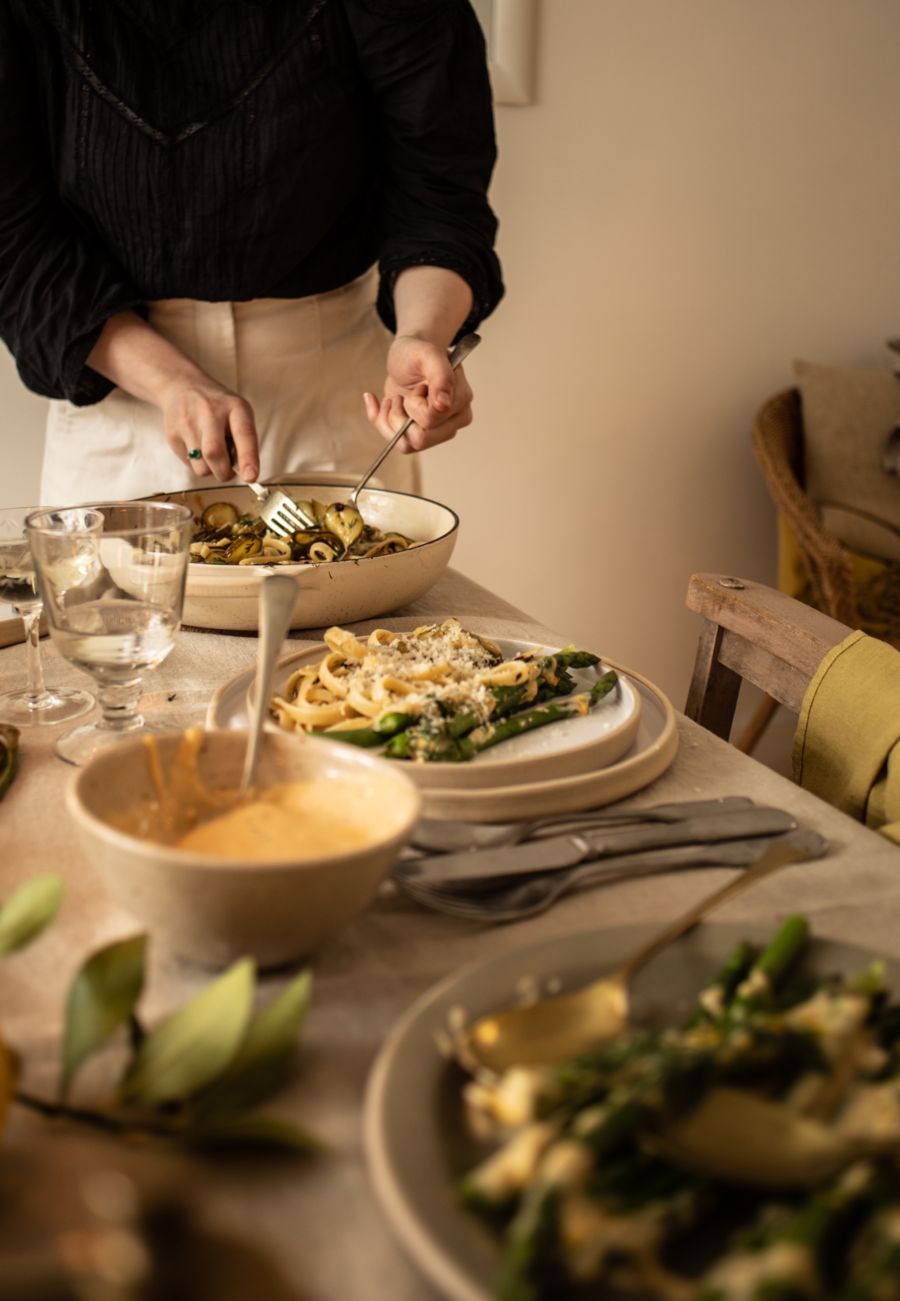 Our visit to see Flora in Dunkeld last month was a pure pleasure. We could have stayed forever, happy as clams to submit to her open-handed, big-hearted hospitality. This was a particular highlight: a dangerously moreish almond and courgette pasta.