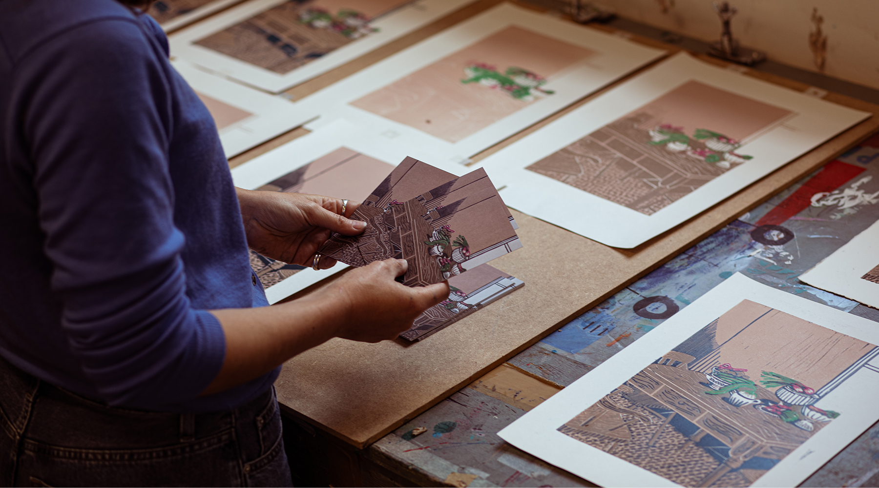 Meet Rosanna Reade, the talented illustrator behind our autumn postcard, which you’ll find tucked lovingly into every one of our parcels this season. Known for her delicate linocut prints and thoughtful storytelling, Rosanna shares her journey into illustration, her creative process, and how Edinburgh’s enchanting charm finds its way into her work.