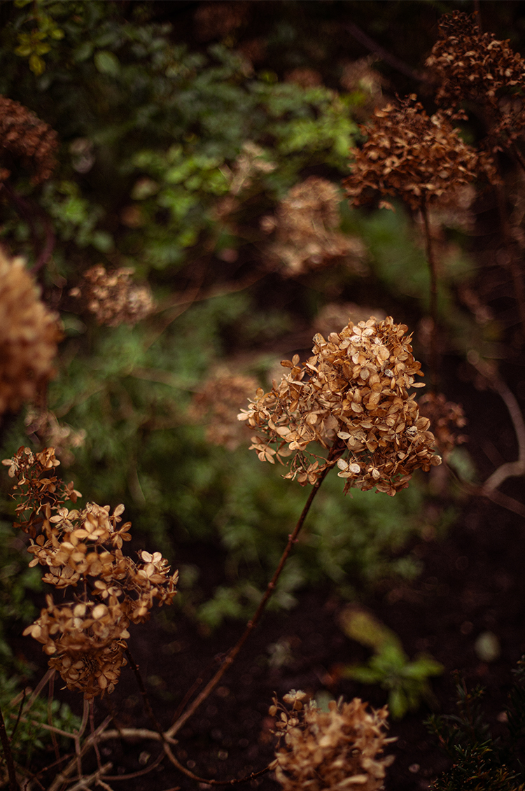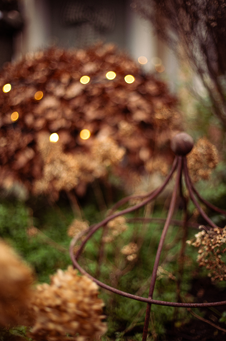 The twinkling lights are particularly enchanting against the golden tones of our dried hydrangea heads, as well as our burnt hornbeam and beech leaves. I find myself drawn to them especially now, embracing the much-needed warm tones amidst an otherwise muted palette.