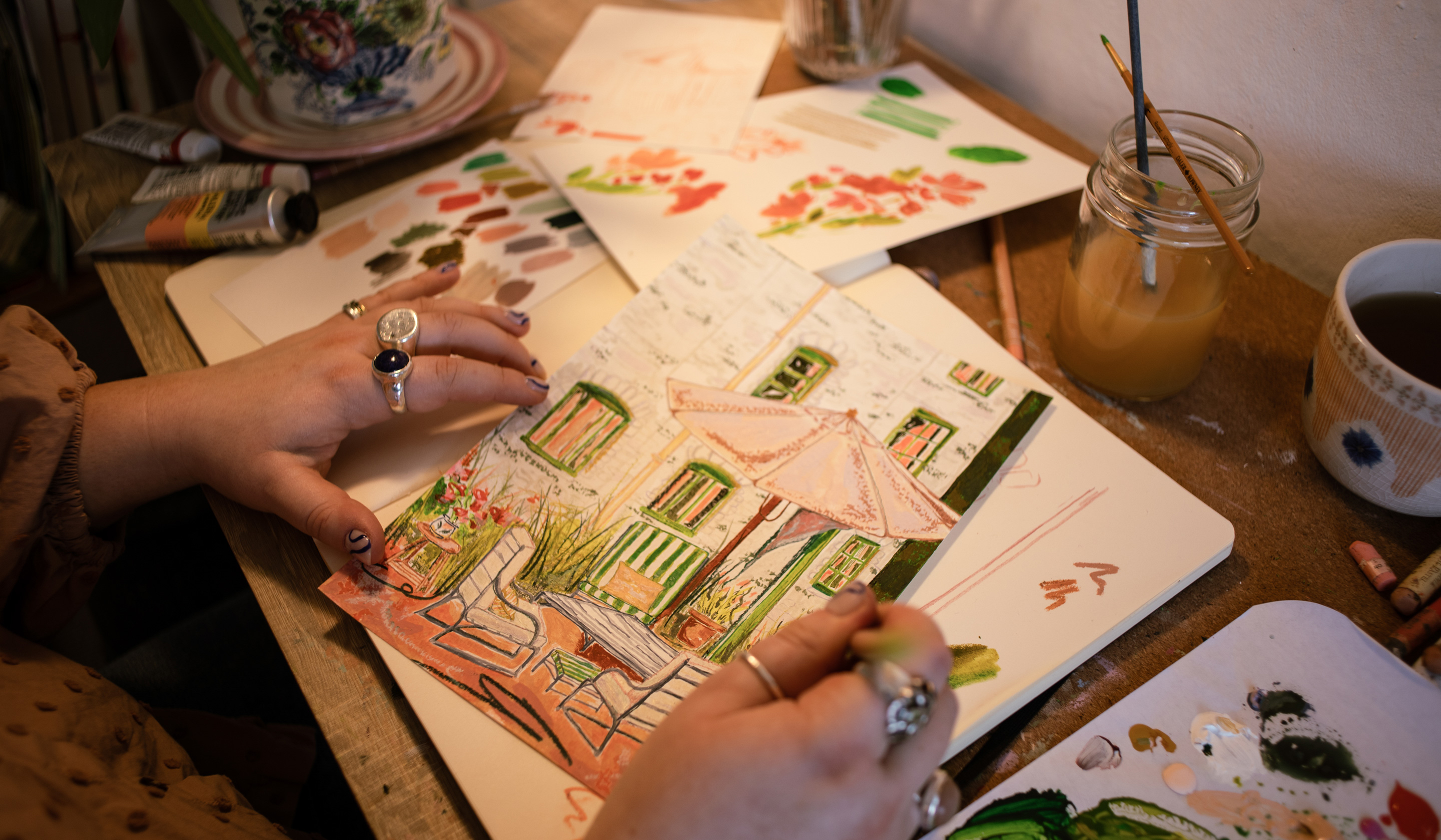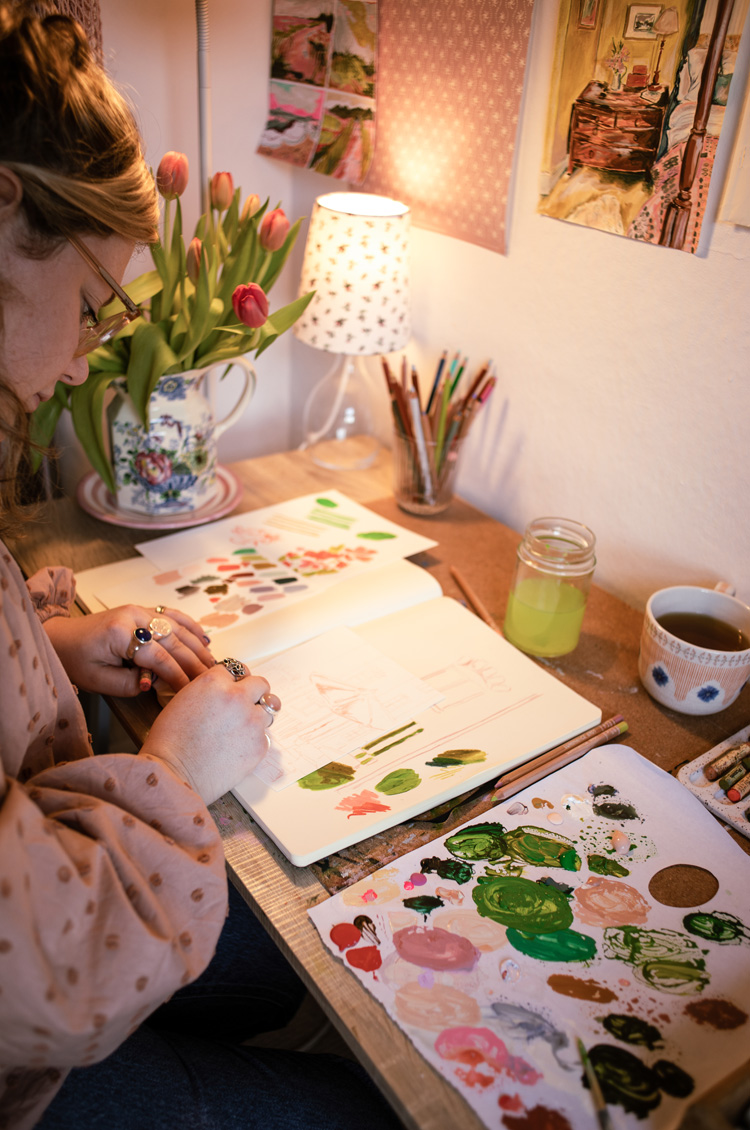 My mornings are always different depending on what’s on my list for the day. Today for example it’s 9.20am and I’m sitting at my desk answering these questions, but yesterday I was working on a lovely landscape commission at this time. Other days I’ll be packaging up print orders and walking to the post office to send them out.