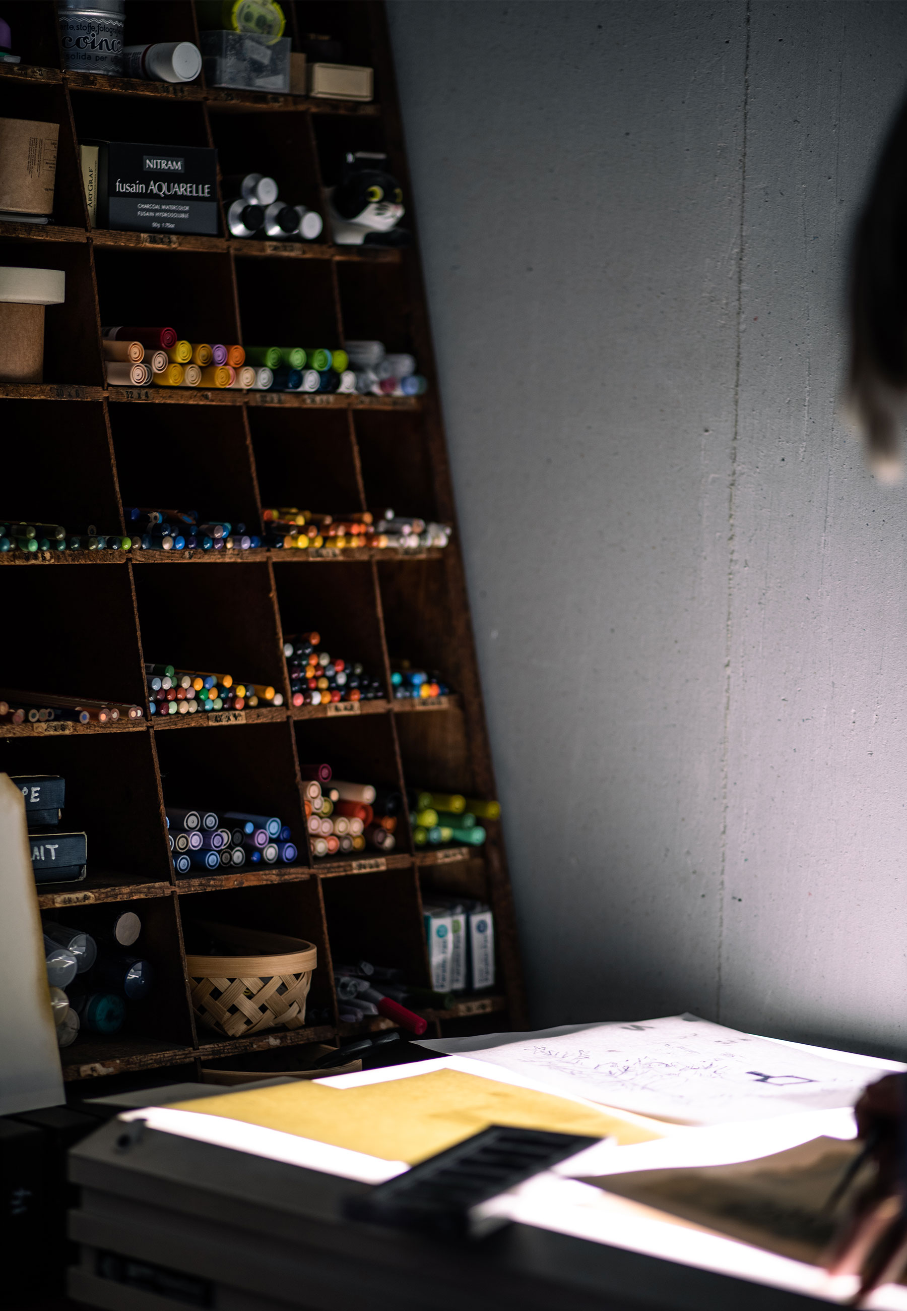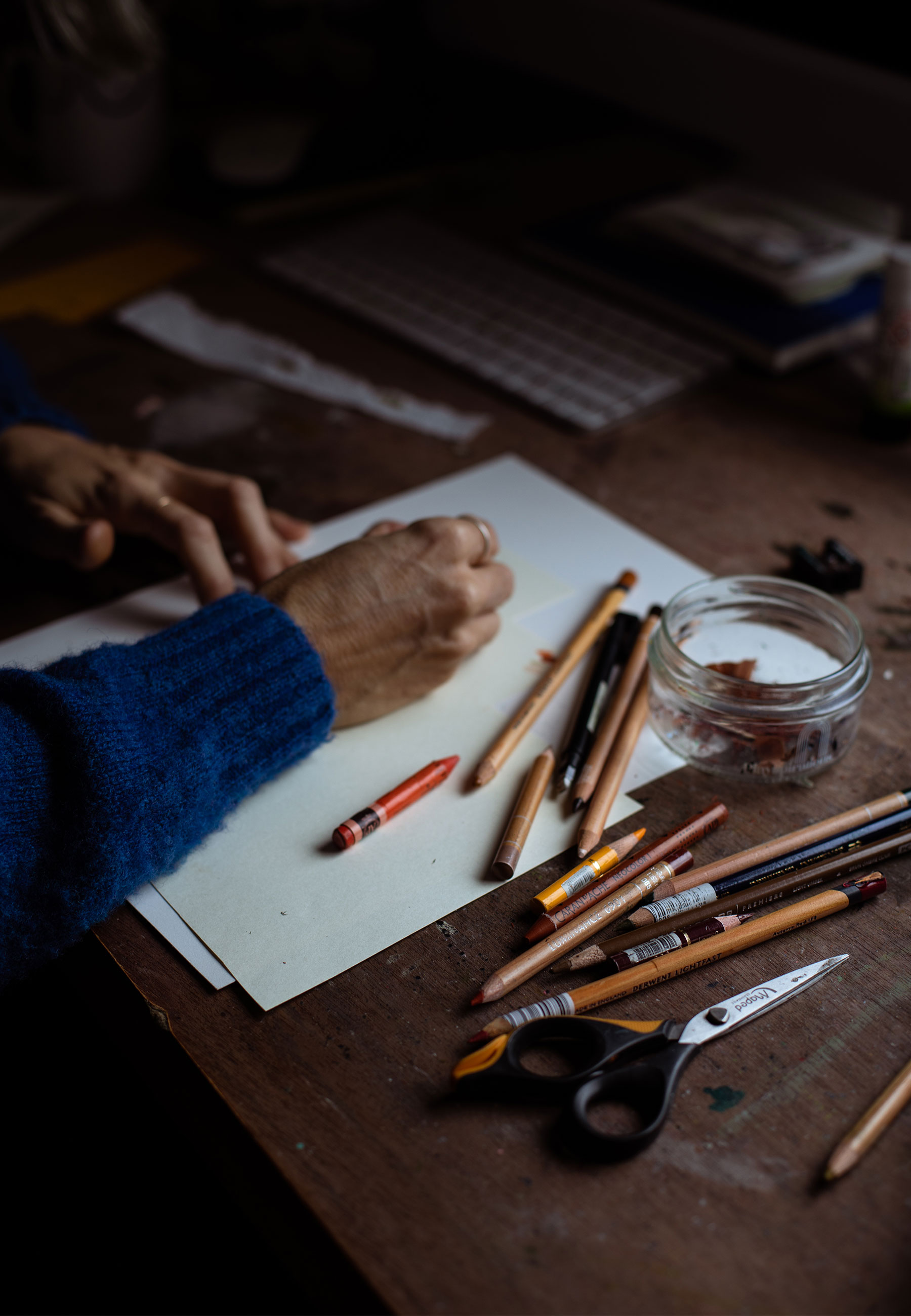Now that my children are all at school, I try to fit in as much work as possible every day between 9-3! It's not always easy working with this schedule; sometimes, I'll hit my stride after lunch, and it can be frustrating having to down tools to do the school run. I work in my garden studio and feel very lucky to have a dedicated space to work in at home, yet also separate from the house. My day is normally a mix of admin tasks and drawing. The drawing part can be work-related for a deadline or just for pleasure, like joining an online life drawing class, creating a post for my Patreon, or sometimes, if the weather is good, I'll go out to draw. I listen to the radio when I work and drink a lot of tea!