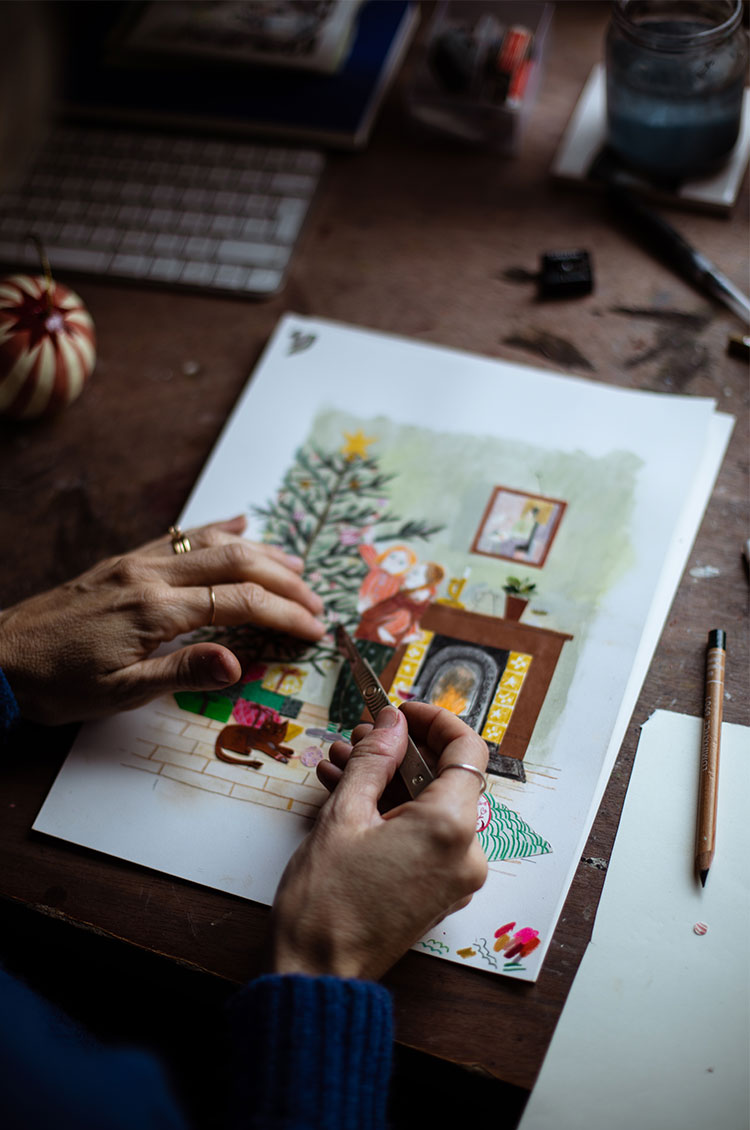 I consider myself an artist and illustrator, and that might look like many ways of working. For years, I worked mainly on children's books as an author and illustrator. However, in 2019, after having my third child, I felt lost creatively and needed a re-boot of sorts. This change of practice came in the form of stepping back from children's books and working in my sketchbooks again to rediscover my love of drawing. I joined lots of online life drawing classes (particularly during the pandemic), and it gave me space to rediscover how I wanted to work. By putting out this 'new' way of working, I've had some really lovely jobs come my way. Highlights last year included illustrating the book by Dodie Smith, 'I Capture the Castle,' published by The Folio Society, being invited to draw at the Chelsea Flower Show, and now illustrating this Christmas postcard from Rowen & Wren. I've learned that things can take time, but it's worth waiting and defining your practice to be able to put out the work you'd like to get back.