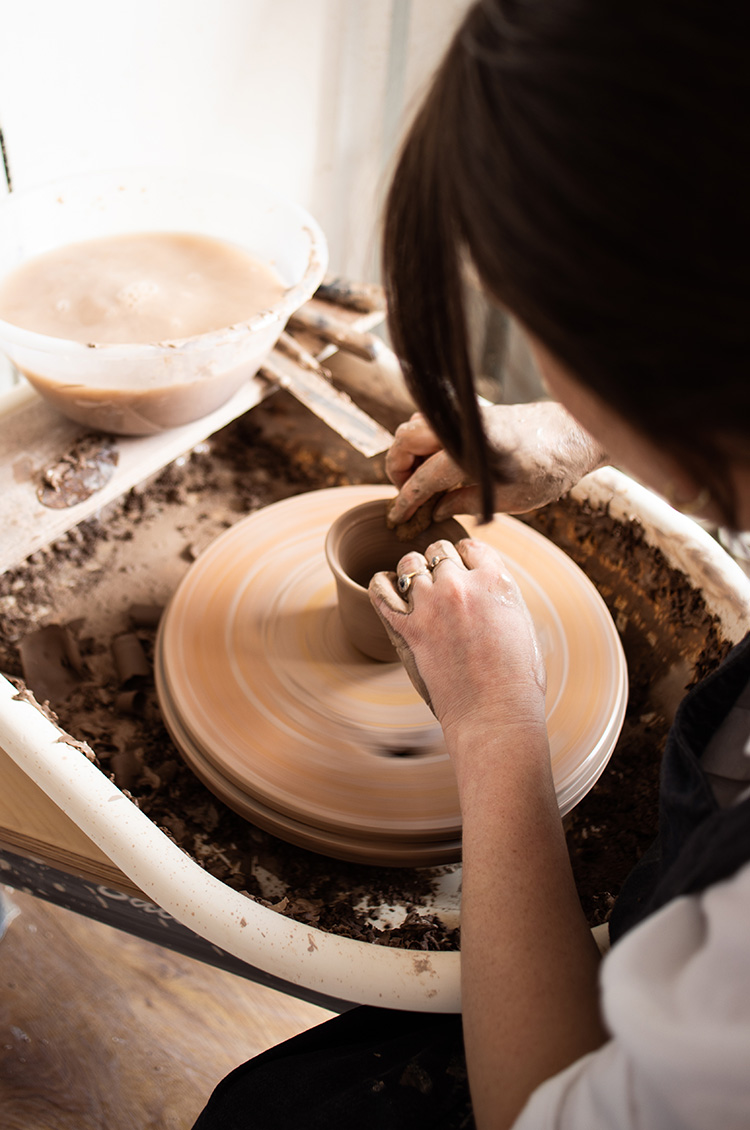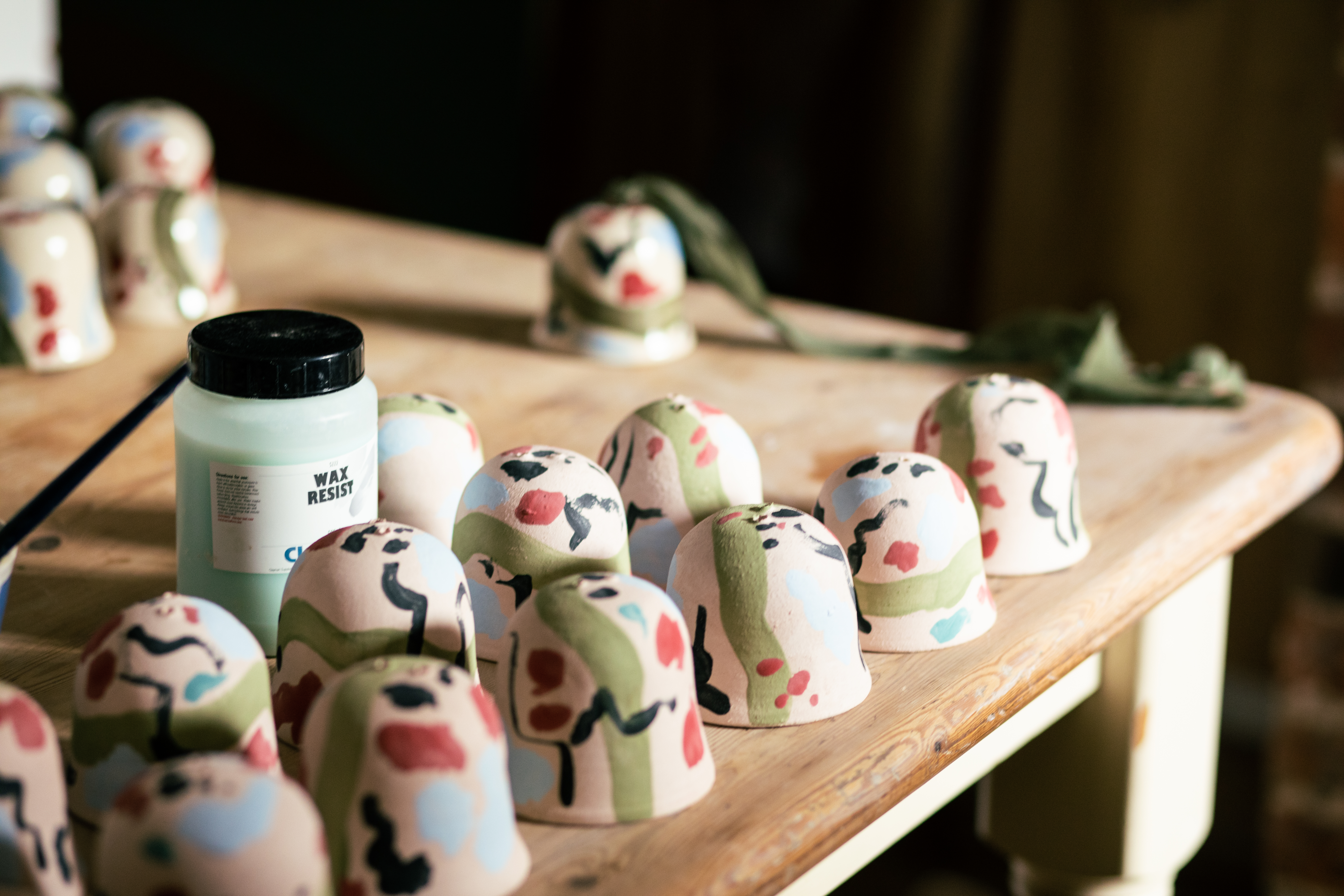 That's a tough one. I sometimes envy the potters in London because I feel like it's such a collective, and they can all bounce off one another. There are a lot of big studios where people share, and I really love that. However, in the country, if you work as a self-employed potter, you are mostly alone. That being said, it's so lovely working by the sea, and the calm and quiet of working in your own garden is most certainly a luxury. I feel very connected to nature. I also have my little loyal companion, Olive, a dachshund who lets me know when it's time for a break or a walk.