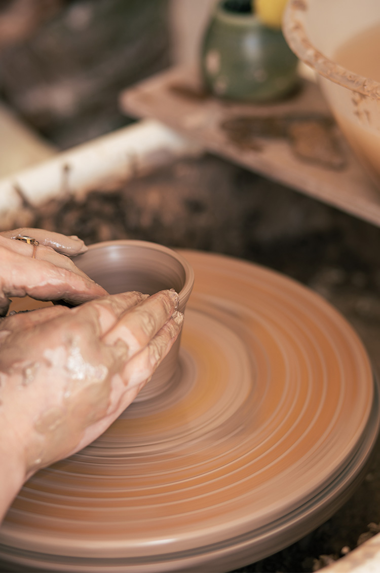 I like to think my pieces look playful, as if they are asking you to touch and fill them. The imperfection comes through in the sense that I don’t count the scallops; I don’t try to make everything the same. Sure, I use a ruler, but I mostly throw by eye. I want it to look like it was made by a human and not a machine. I like areas where the glaze is thin, and pools and drips in others. It’s like saying, "I was here," or as Val says, "the maker's mark."