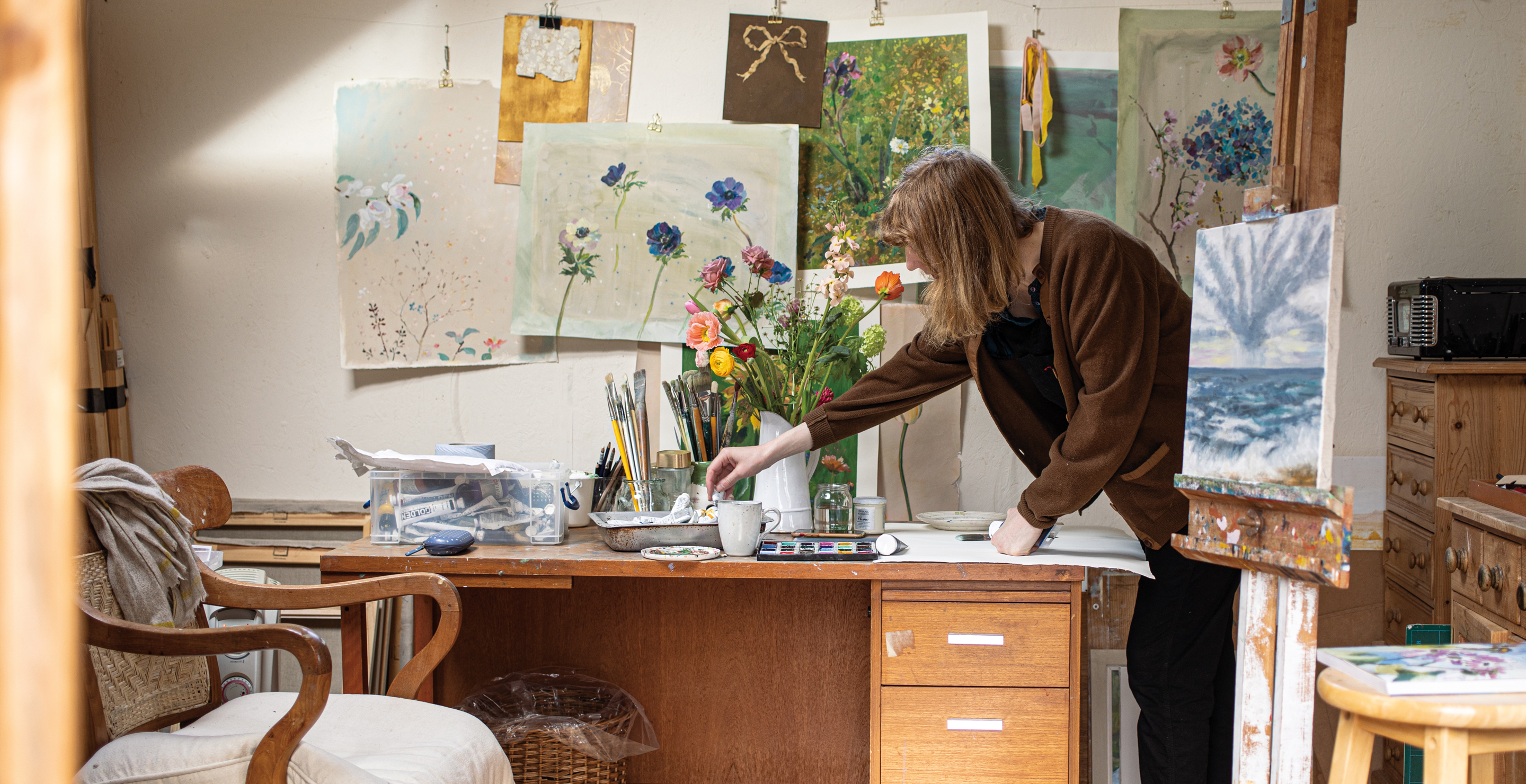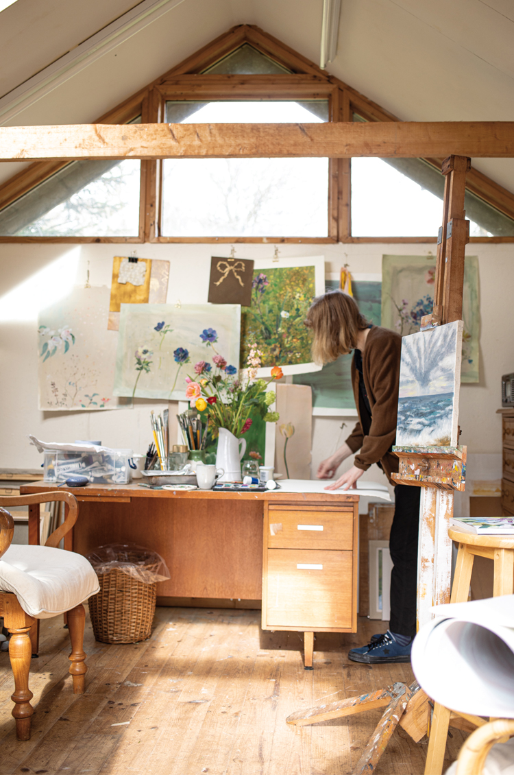 ‘There are always flowers for those who want to see them,’ so said Henri Matisse, and there was never a truer quote for Flora Roberts. From early years spent quietly painting the blooms that found themselves in her parent’s abundant garden to gathering inspiration from flowers found on her morning commute – her subject for our spring postcard should come as no surprise. In March, we visited her in her Dorset garden studio, supplied with several rounds of toast topped with homemade honey, to watch our painting come into being and to get to know the artist behind the easel a little better…