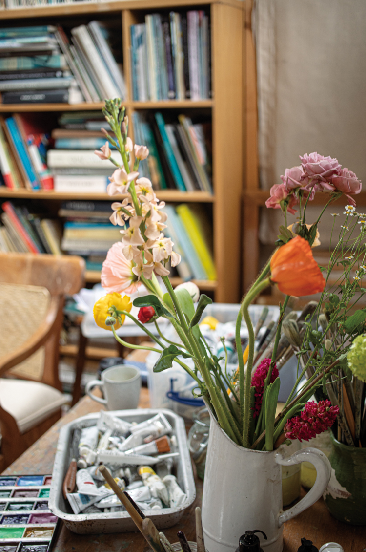 “I think most artists would say there’s a flatness from painting from a photograph and I agree. Without meaning to sound pretentious, you just get more of the essence of something when you paint from life as there are other things going on like the light and smell. There’s also a sort of immediacy with a flower – you know it’s going to die quite quickly so it feels very true to life and that helps me to bring feeling into my paintings I’d say.”