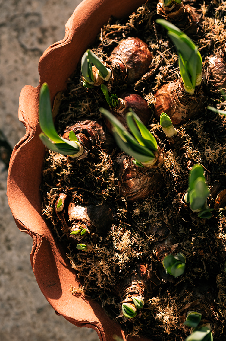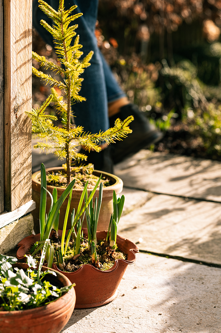 We have mulched the beds, and managed to get most of the dahlias (which have been left in the ground again this year) and other delicates tucked in just before the snow came. As always, the birds are making a huge mess of it, scratching for grubs and tossing it about, but it’s rather nice to think it’s also serving as an extra winter larder for them. The mulch means the spring bulbs are always a little slower to appear than those in my pots, but we’re beginning to spot small green tips nosing through the soil now, and with them comes that familiar, much-needed flicker of hope for spring.