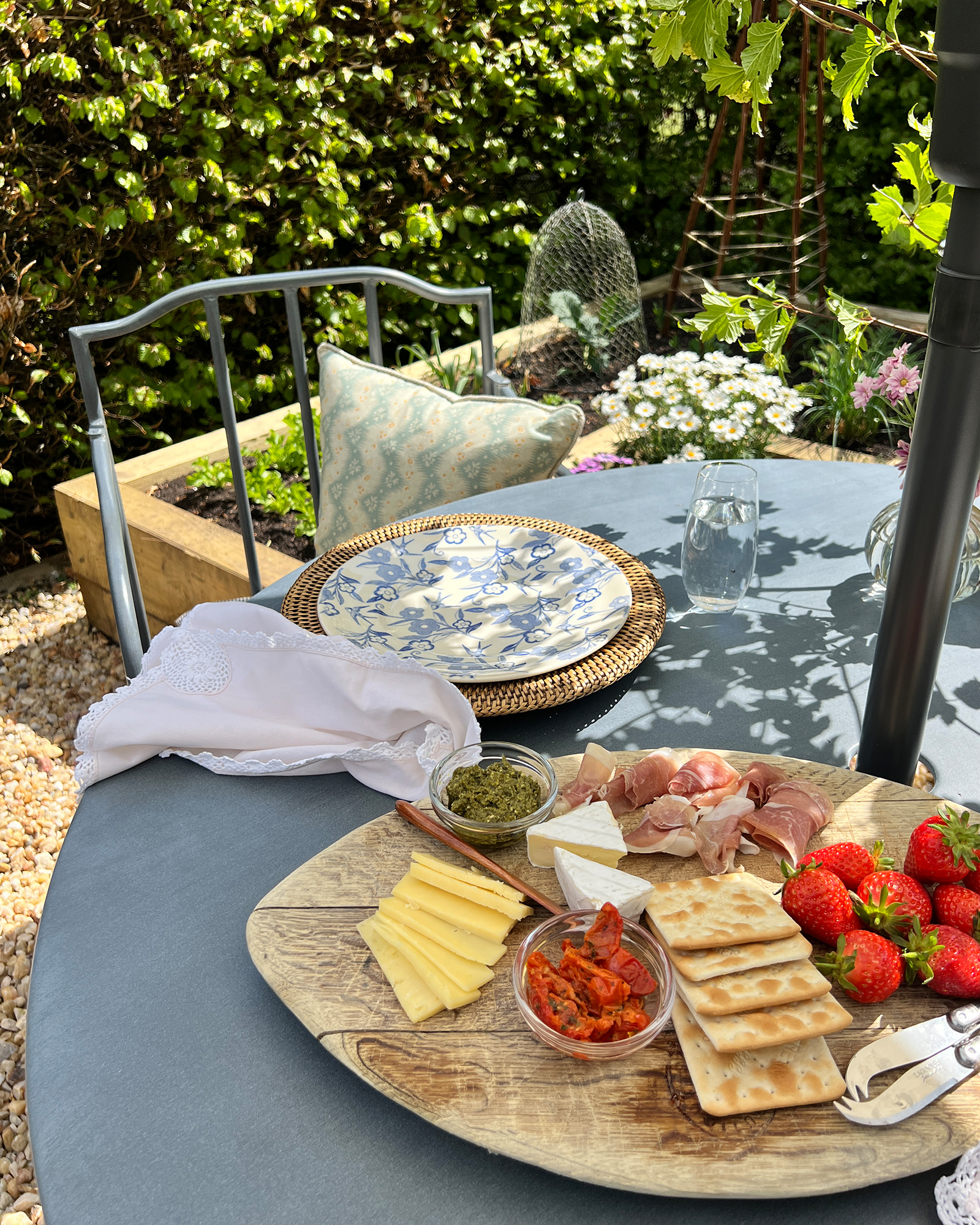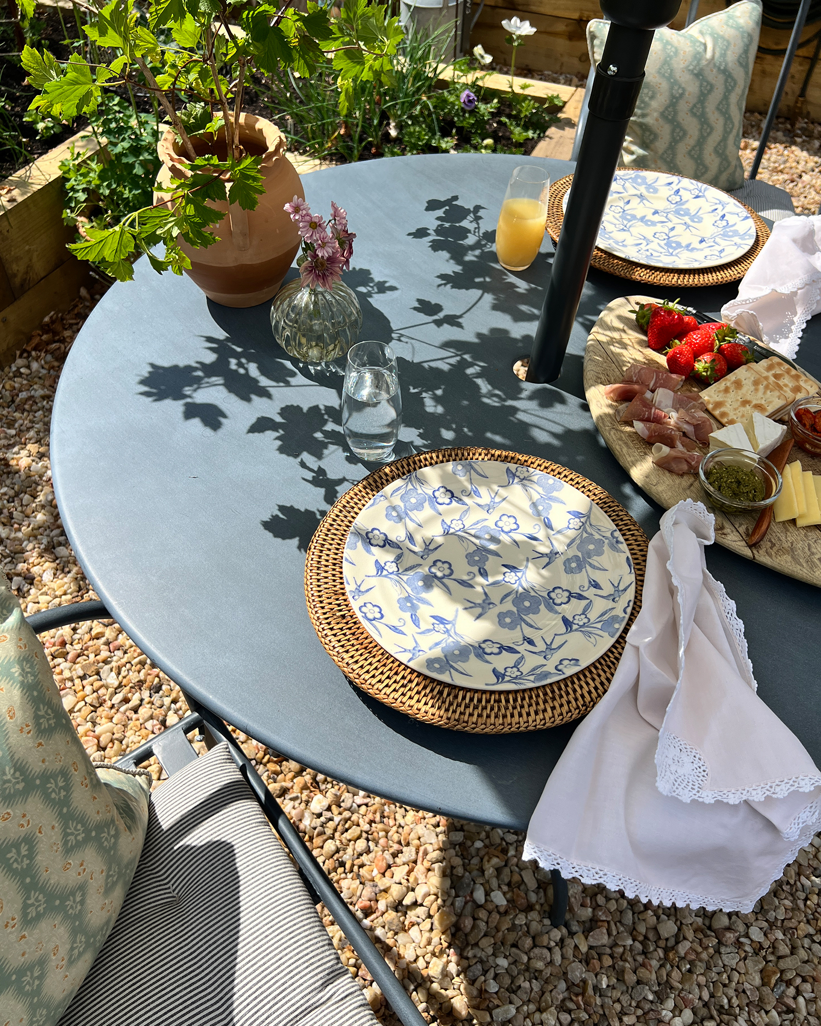 ‘The table and chairs have been a truly wonderful finishing touch and are used multiple times daily,’ she enthuses. ‘I’m enjoying making lunchtimes feel special by setting the table, snipping a few branches of whatever is blooming to use as a centrepiece – even if we’re just having a sandwich and a cup of tea.’