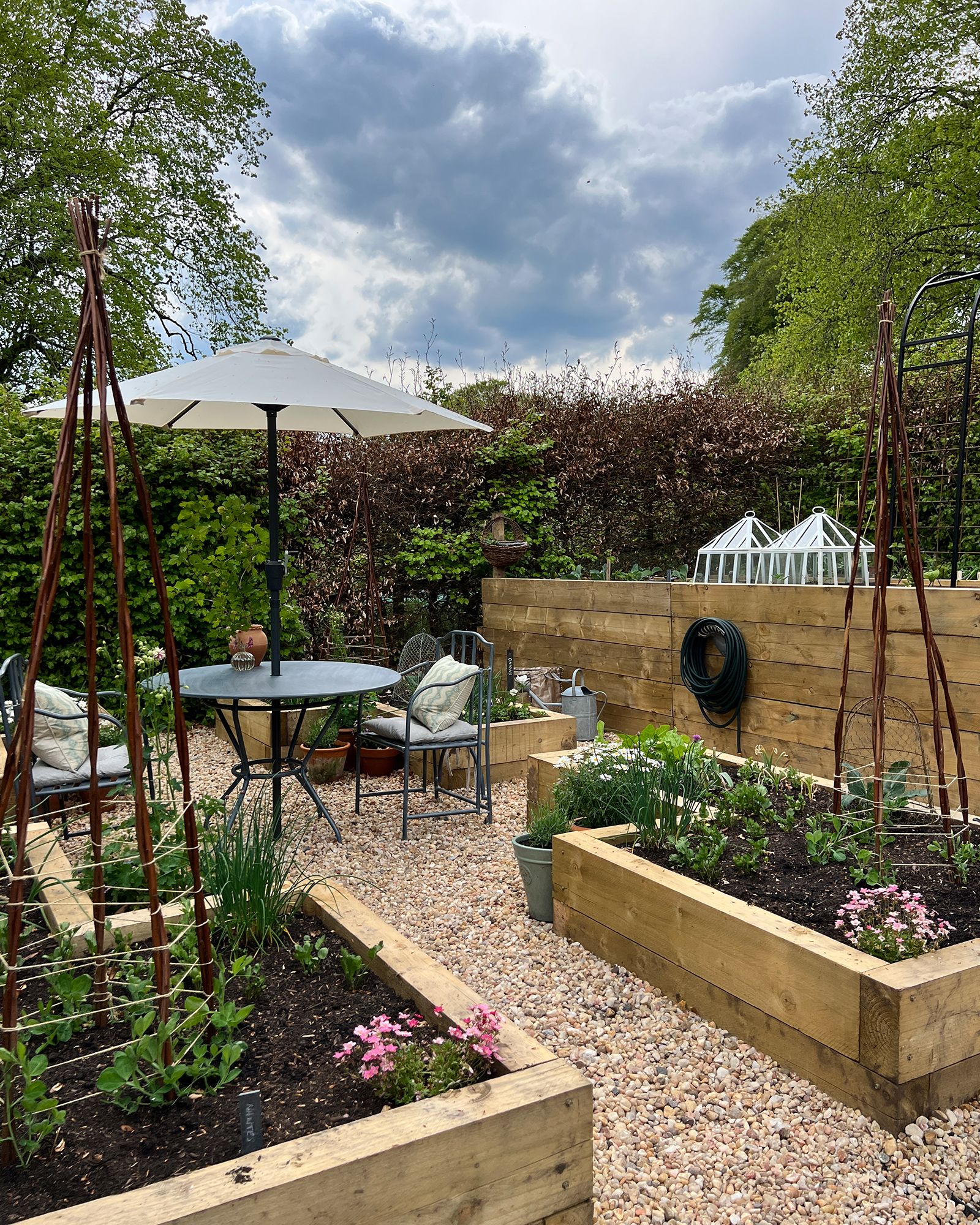 The result is an enchanting marriage of form and function: a mix of raised beds, sacks and containers, threaded with arches and panels for vertical growing, all cleverly designed to maximise space without compromising on beauty.