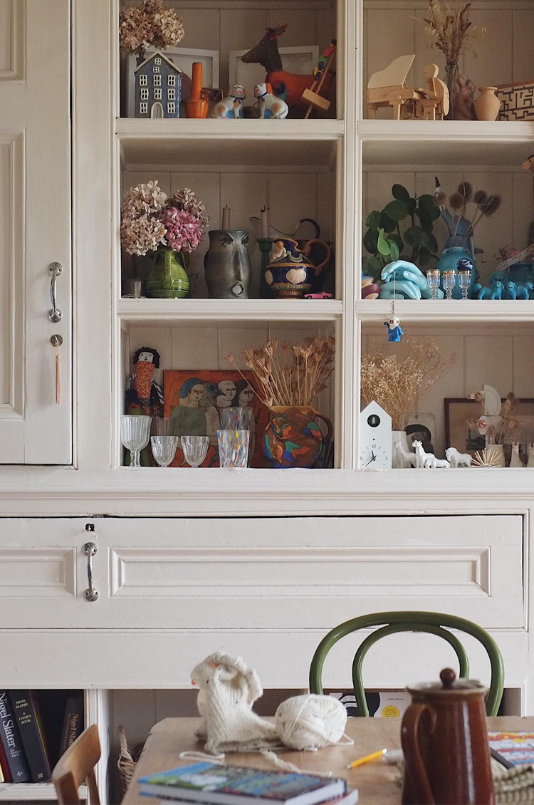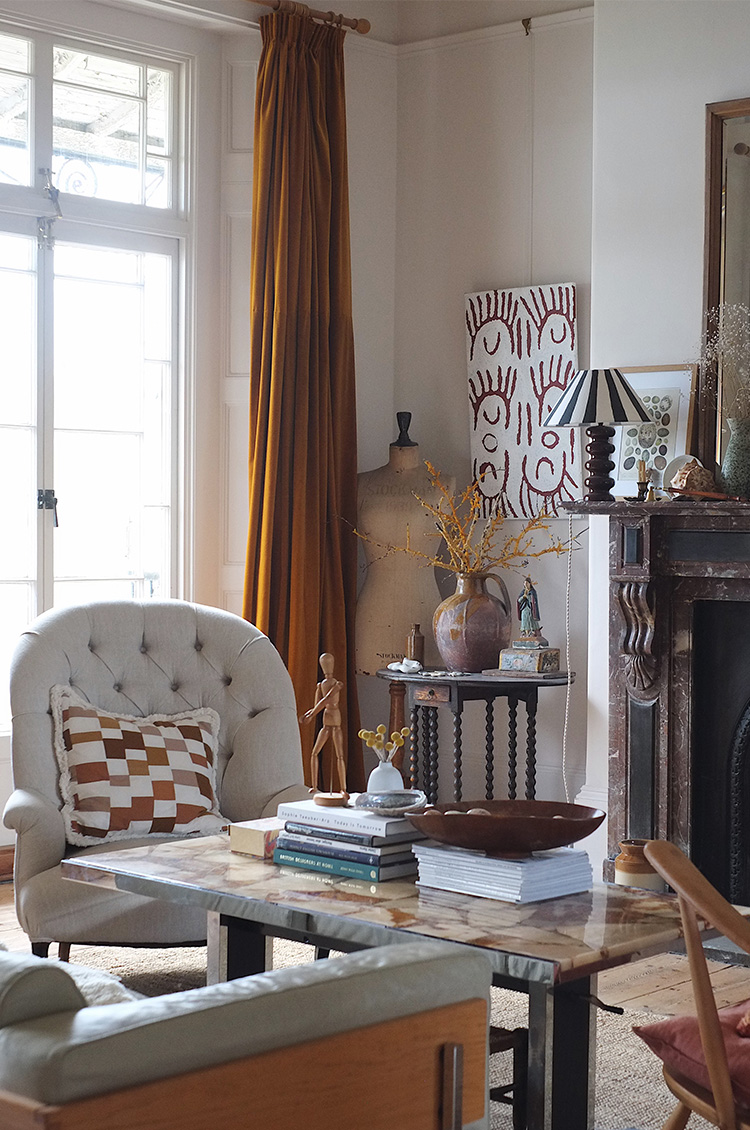 Every find is, you sense, is an unhurried labour of love. Take, for example, the bookcase that transformed a large hallway from near-institutional austerity to a space that invites afternoons spent plucking books from shelves and curling up in a nearby corner. ‘We wanted to turn the hallway into a sort of library,’ recalls Jessie, ‘but all the big bookcases we saw were far out of our price range. I found one on an auction site for almost nothing with dreadful photos but the right size. We realised it wasn’t going to fit up the stairs, so we had to take it apart in as few pieces as possible and put it back together, scrubbing away years of dirt, fixing lifted veneer and waxing it all over. Now it looks like it’s always been there.’ After all, in the end, good craftsmanship goes with everything.