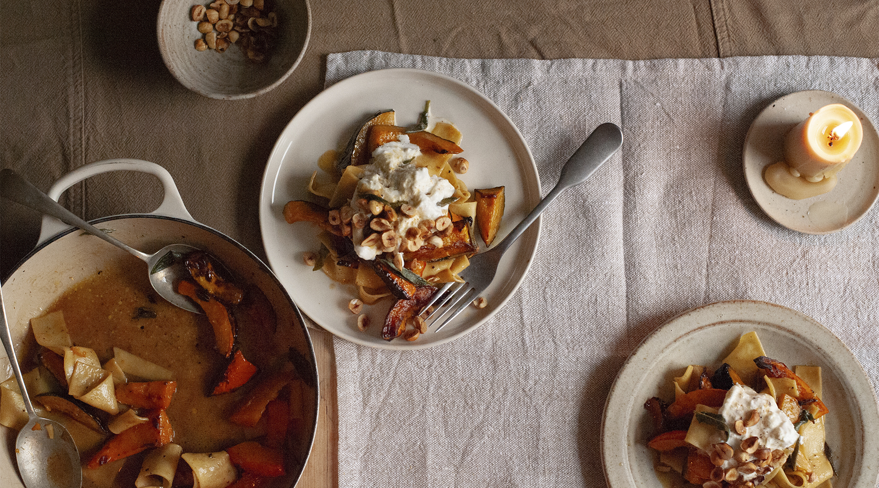 Just as the air turns crisp, Flora treats us to a recipe that celebrates the heartier flavours of the season. Perfect for cosy evenings or a relaxed weekend gathering, this Pumpkin Pasta with Burrata and Hazelnuts is autumn on a plate – warm, rich, and full of the earthy, nutty goodness that defines the season's harvest. Join us as we indulge in the simple pleasures of autumn with this inviting, seasonal dish.
