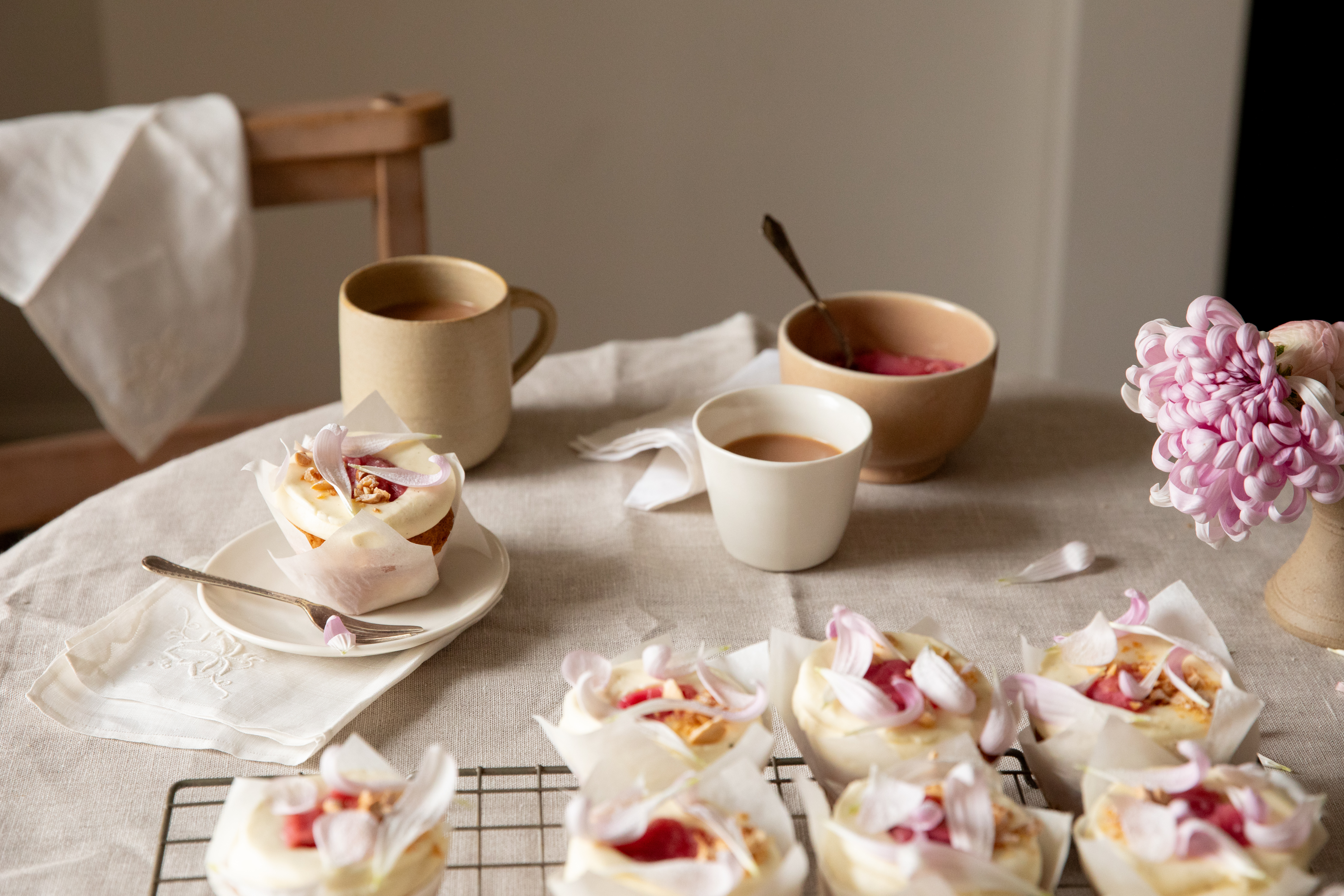 Just as the first rhubarb begins to appear, there is something rather joyful about baking with it. For this Mother’s Day, we turn once again to Flora Shedden, who shares a batch of delicate rhubarb and yoghurt cakes. Soft, gently almond-flecked and topped with a cloud of mascarpone icing, they strike that lovely balance between bright and comforting. Just the thing for a slow spring afternoon, perhaps with a pot of tea and someone special around the table.