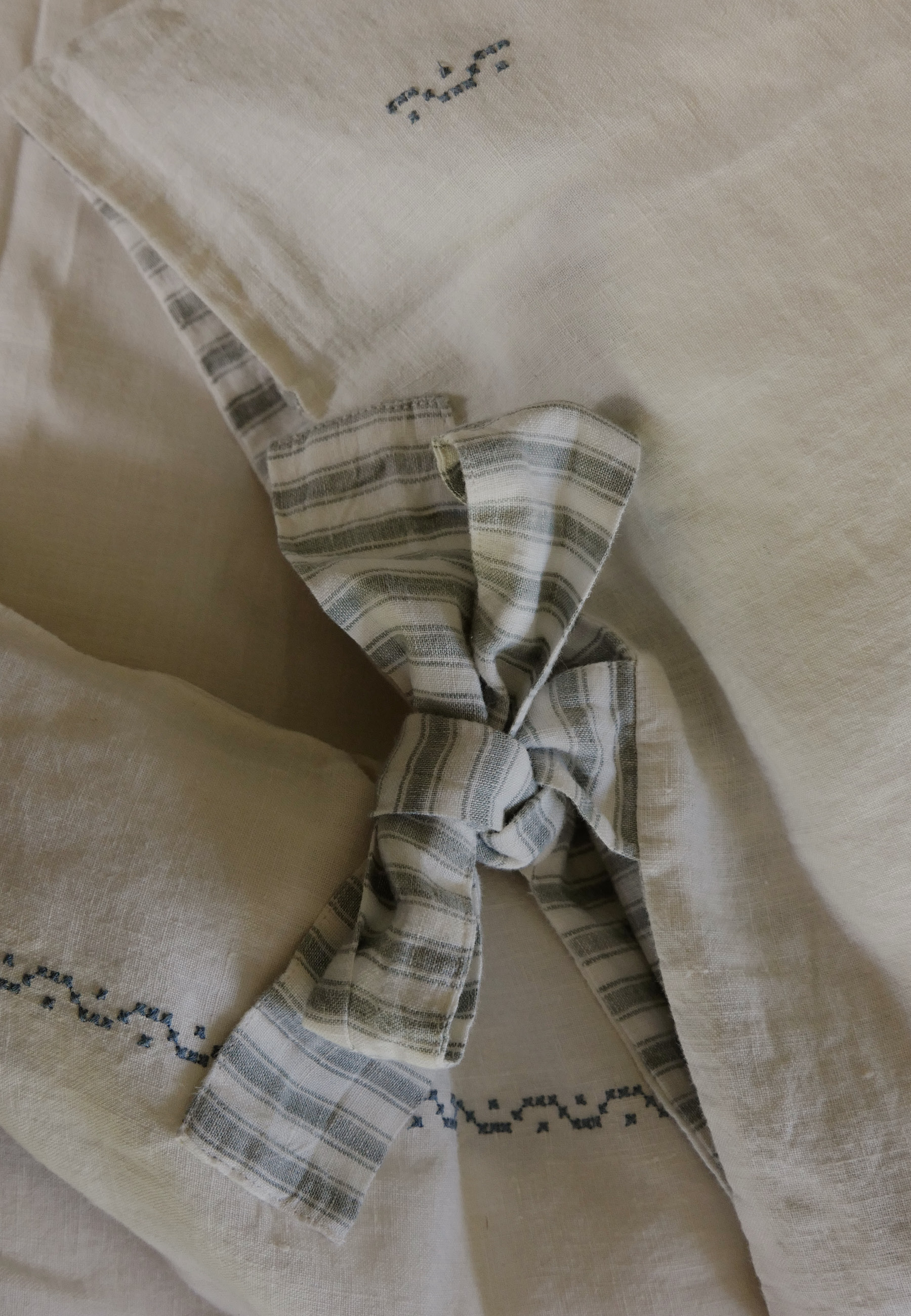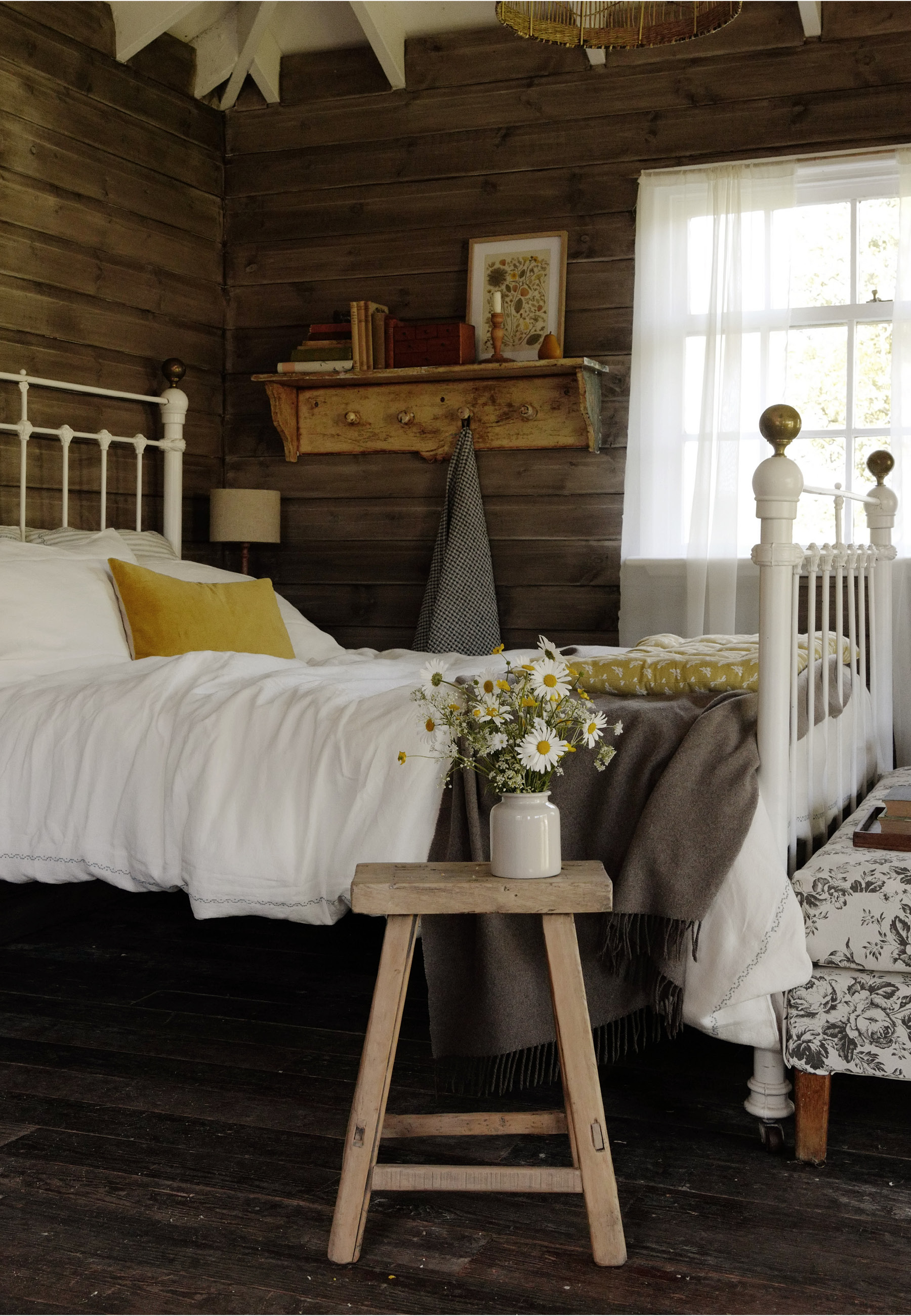 ‘In summer, I spend as much of the day outside as I can, and sleeping in the shed has always been something I’ve wanted to do. When I saw Rowen & Wren’s beautiful embroidered linens, I immediately had a visualisation of a brass bed in the shed, a gentle breeze coming through an open window, surrounded by greenery on the cusp of summer, with all the cow parsley in bloom. The bedding felt exactly right for creating the romantic vision I had.’