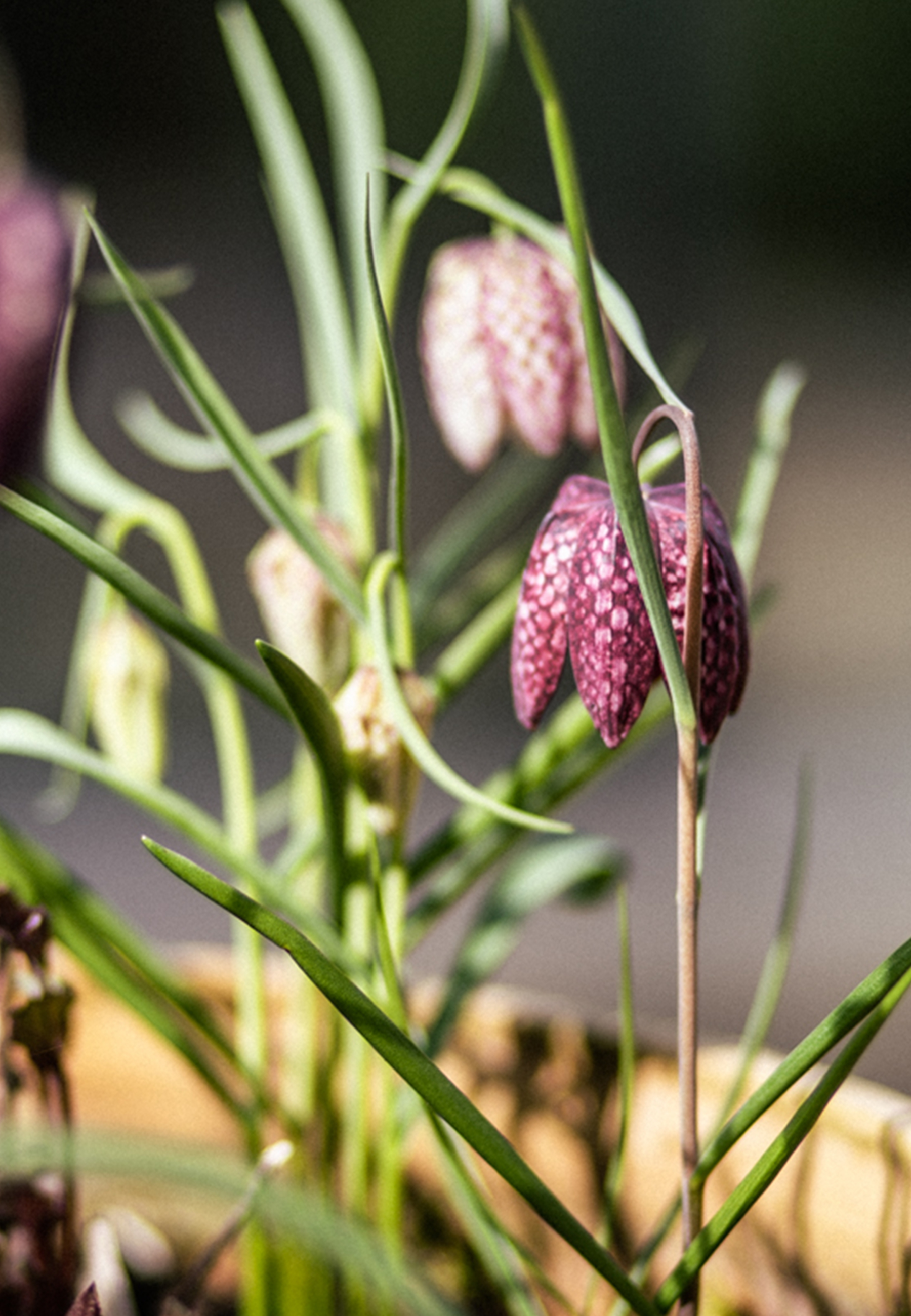 The appearance of the gloriously named Snakeshead Fritillary is one of the real highlights of the early spring garden, their sweetly bowed heads both demure and delightful. I have tucked them into as many pots and beds as possible this year, scattering such daintiness liberally so that their heavy-headed silhouette and sensational checkerboard pattern may carpet the garden with fleeting, fragile beauty while they last.