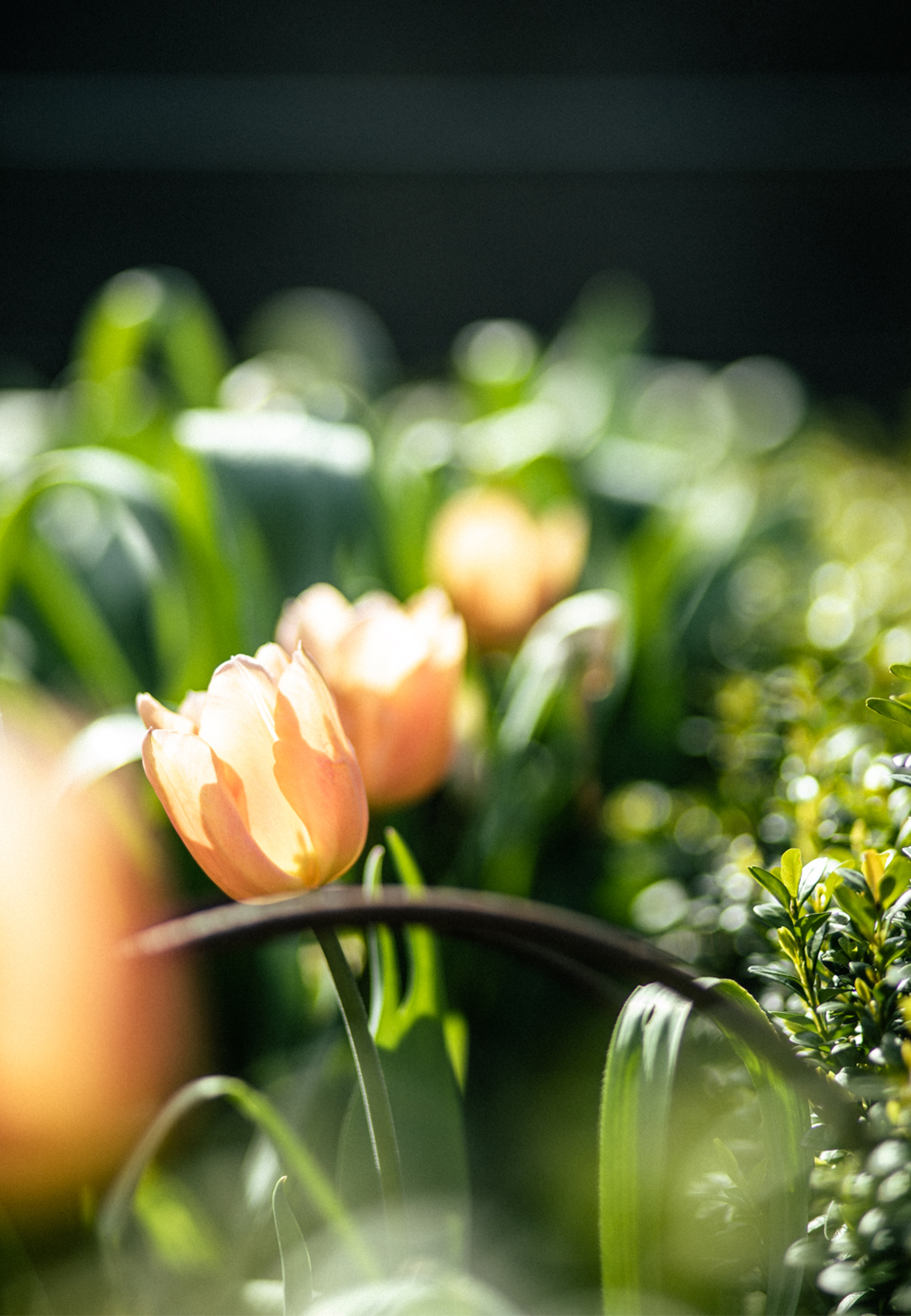 Sound the bugles! Tulip season is officially in swing, with the early varieties delivering a hugely welcome splash of colour to the garden. It may be a while yet until they’re all out but watching and waiting to see which cheerful crops will spring up next is part and parcel of the joy of tulips. For now, I am really enjoying the new apricot variety bursting forth at the front of house which, in symphony with their bleached terracotta pots and the pink of the cottage windows, is making it feel very welcoming indeed all of a sudden.