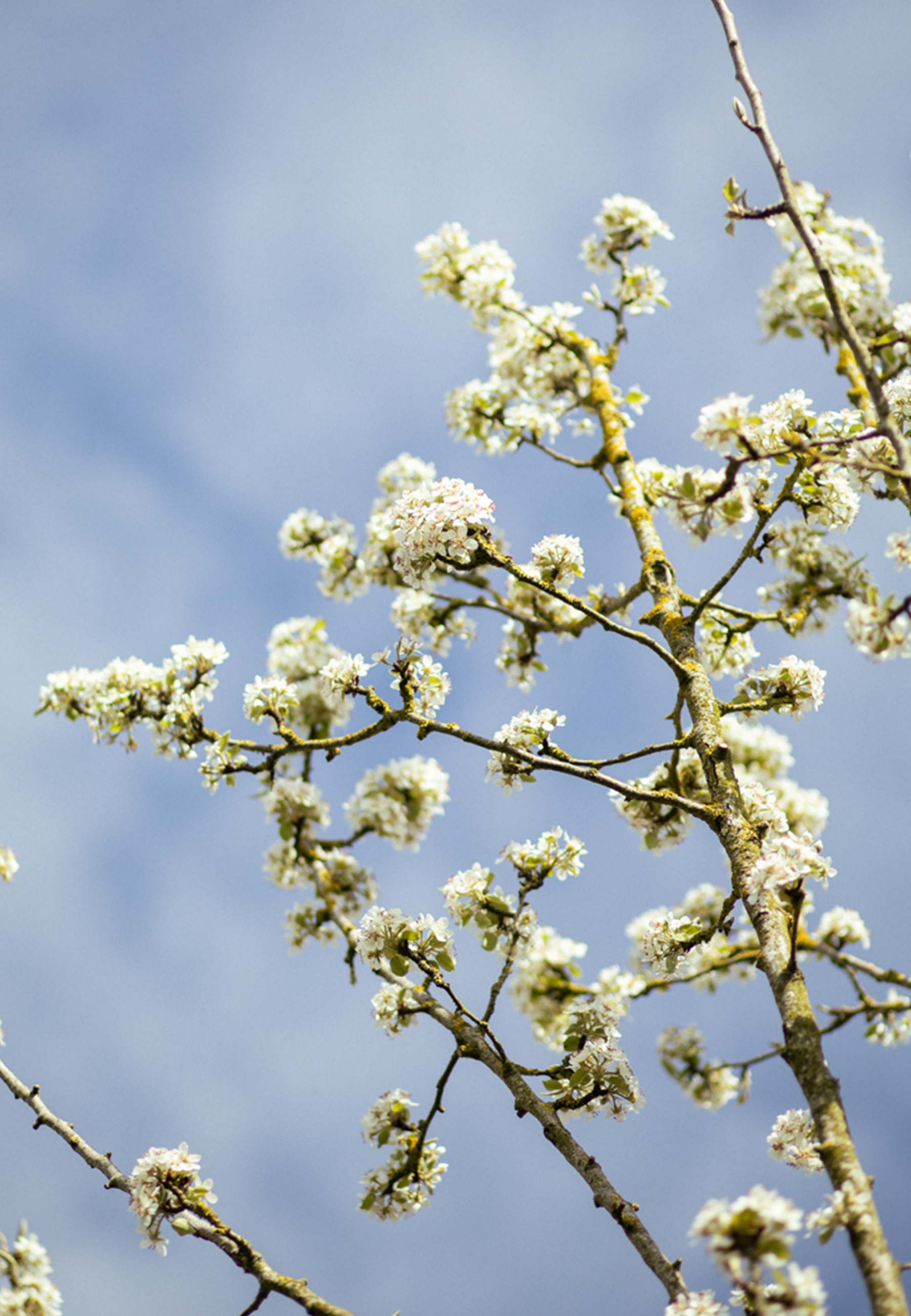 The Alamanchier in our courtyard always serves as a reliable barometer of the changing seasons: the first to blossom, it is also leads the charge when we round the corner back into autumn. I’m so delighted that its delicate blossoms have now unfurled, signifying unequivocally that spring really is here. Another herald of hope is the good sprinkling of blossom to be seen on our one and only pear tree. Having not produced an awful lot of fruit these last few years, we’re optimistically taking it as a sign that its current abundance might give way to a bounty of juicy pears later in the year.