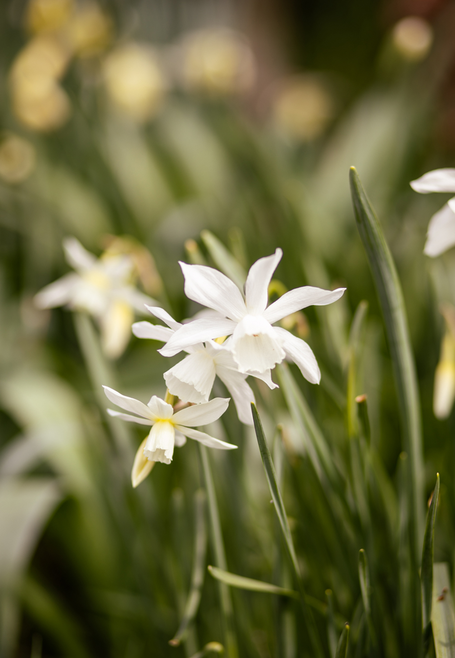 Later in the year, the beds that frame our lawn will grow leggy with verbena and thick with taller grasses. But rather than letting them lie dormant while we await their glorious arrival, last autumn we selected a host of white and palest yellow daffodils to throng the borders and thus add a little interest and good cheer. I’m so glad we did: the sight of Narcissus Thalia, Daffodil White Explosion and Daffodil Mount Hood swaying prettily on the breeze is one for sore, winter-worn eyes.