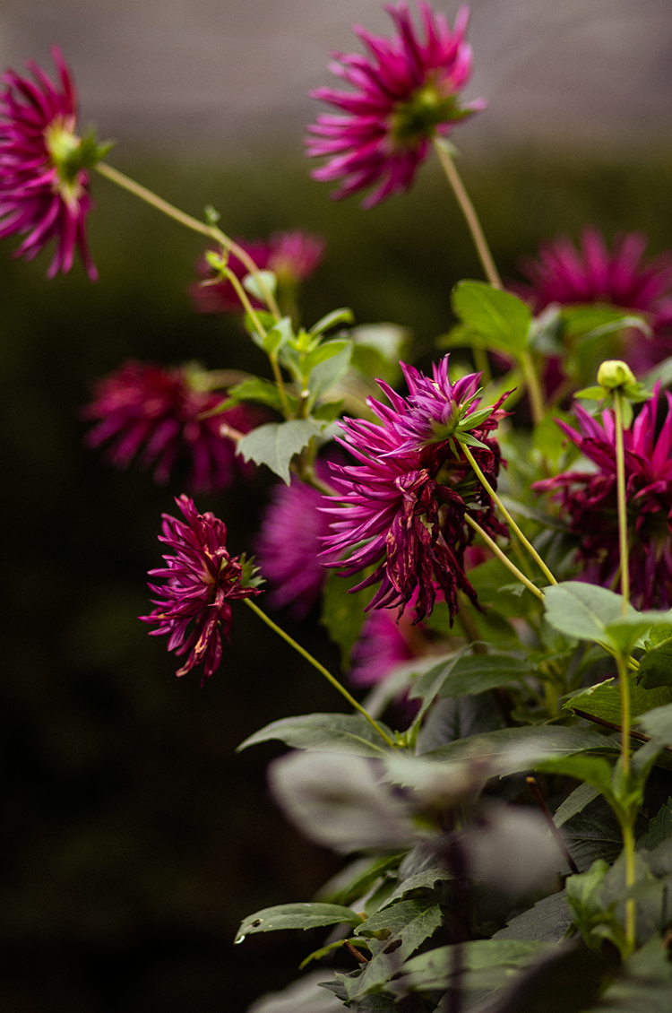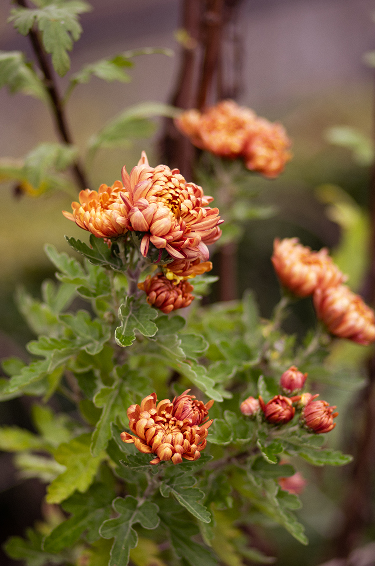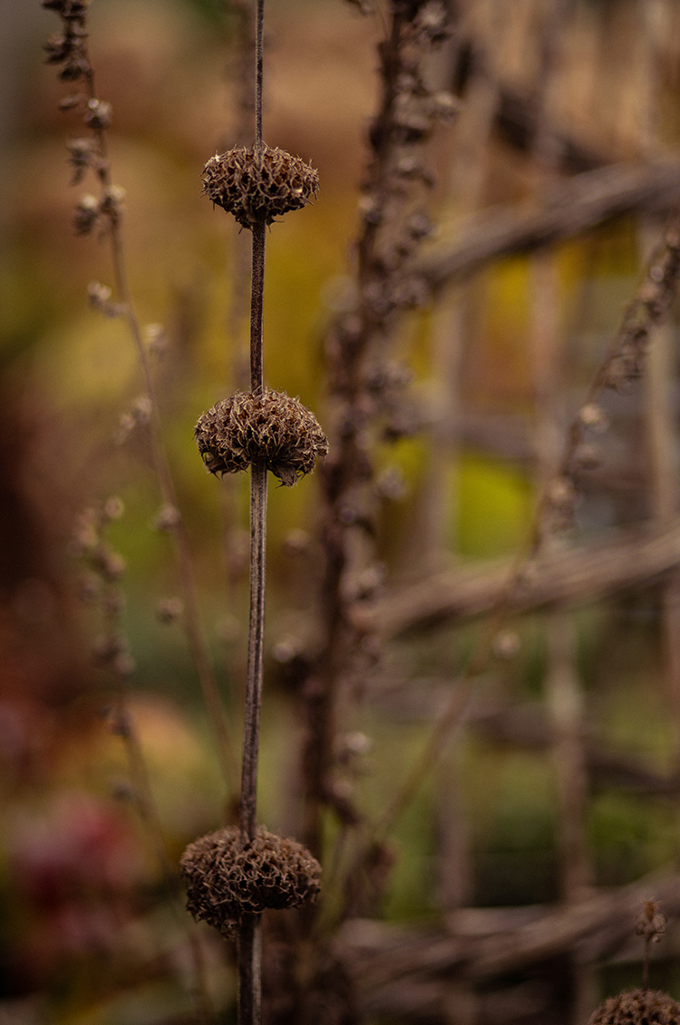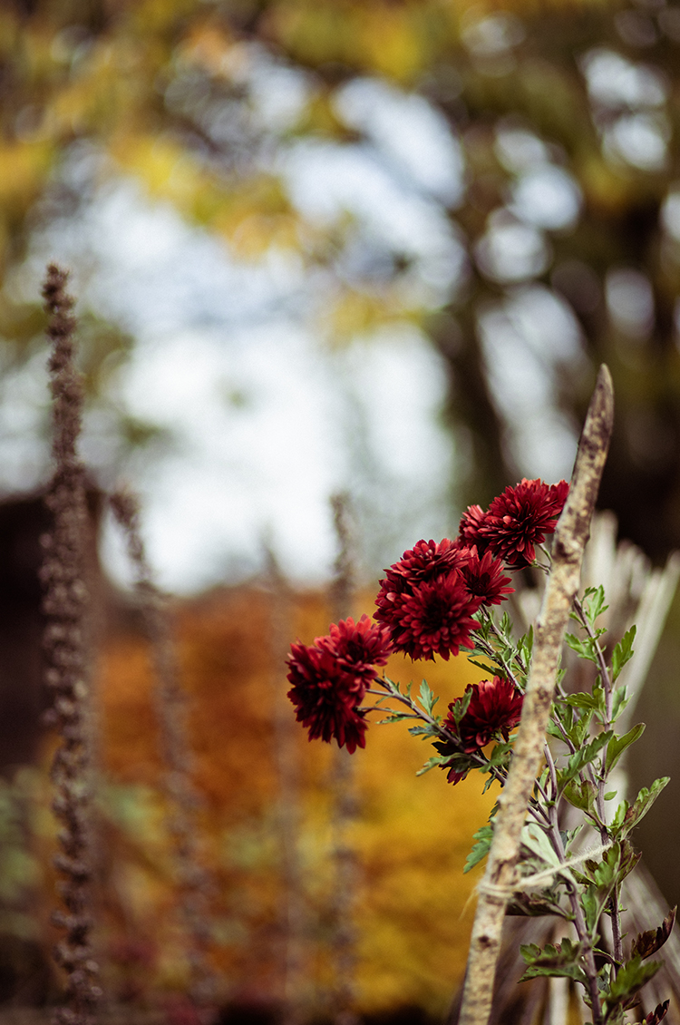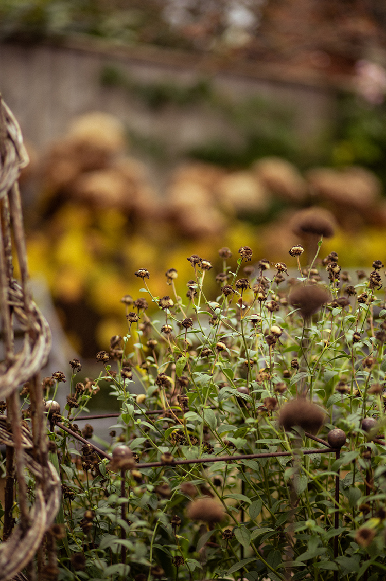 As autumn fades into winter, the garden transforms into a gorgeous collection of my favourite rich and earthy tones. While spring and summer’s riots of colour bring undeniable joy, there’s something grounding and intimate about the deeper hues of autumn foliage. Our beech topiary trees shimmer in exquisite golden hues, while the smoke bushes glow with crimson reds. These rich layers, scattered with fading florals like magenta dahlias and blush-tinged roses, paint the garden in the most warming of palettes – perfect for the cold season.