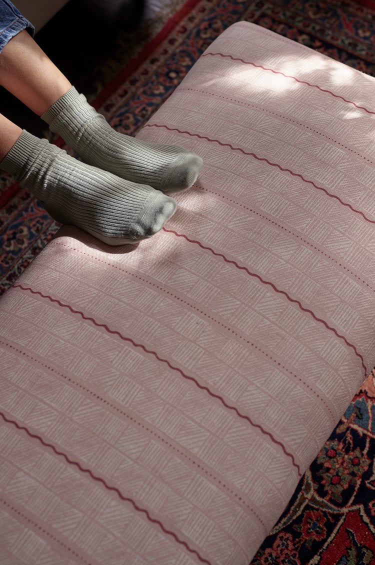 Can you tell us about the beautiful Abstract Stripe fabric you've designed for our Edmund Footstool?