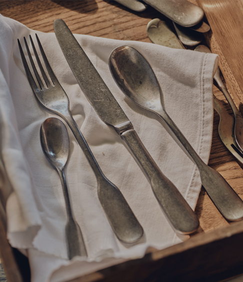 Welcome to the beating heart of the home, where rustic kitchen and dining accessories reside in harmony. From timber utensils and breadboards to beautifully forged fittings and handmade crockery, it’s a feast for the eyes indeed.