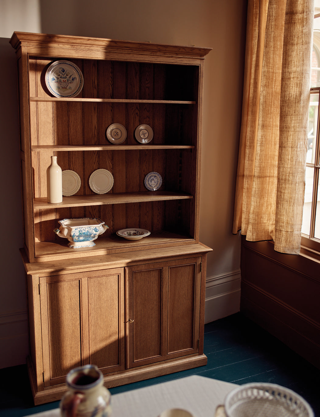The new season ushers in a capsule collection of timeless furniture additions, lovingly crafted to transcend the seasons and stand strong through the years as future heirlooms. Hand-hewn from British oak, our new bar stools, Welsh dresser and sideboard in warm, walnut-toned wood bear all the hallmarks of generationally honed artisanal artistry.