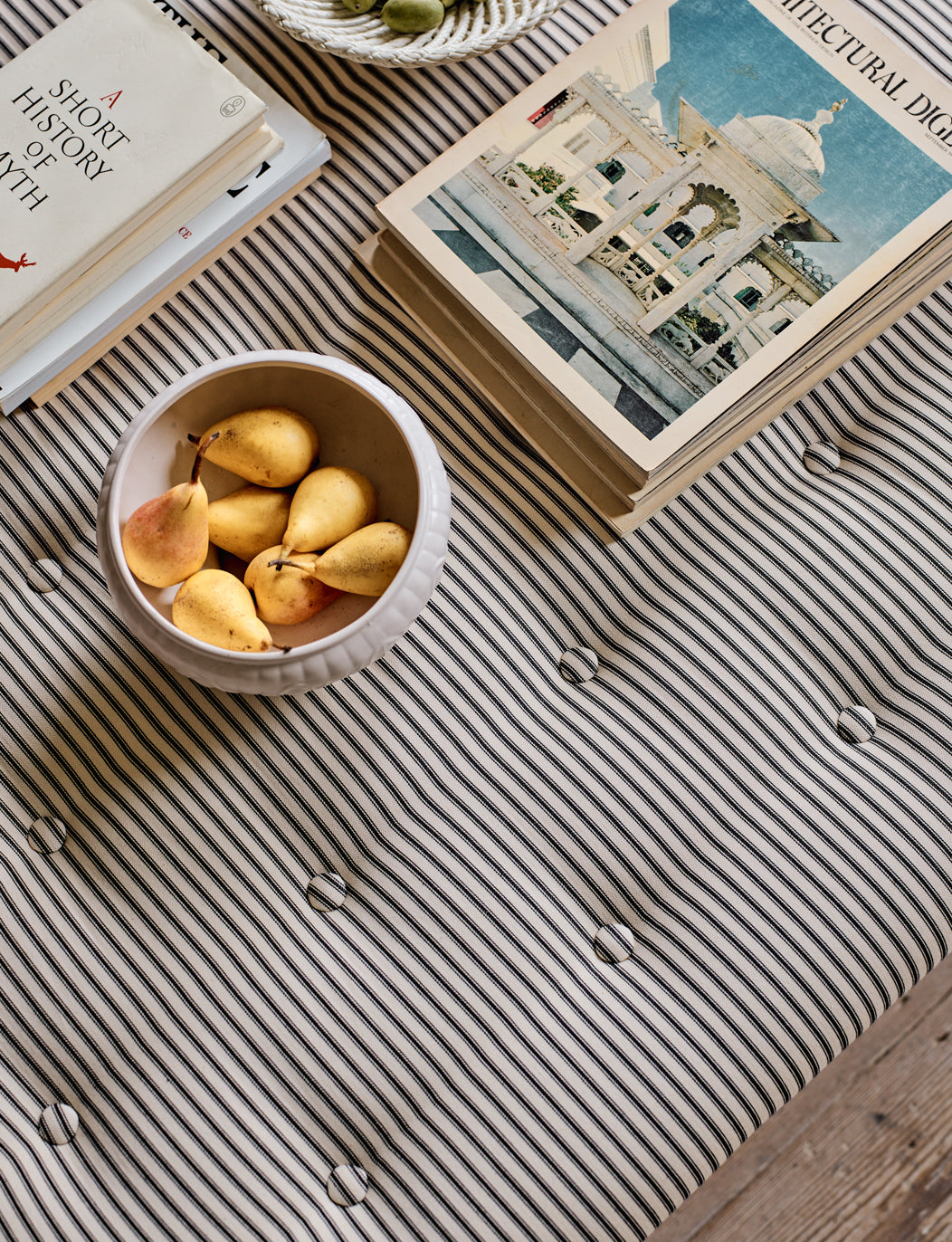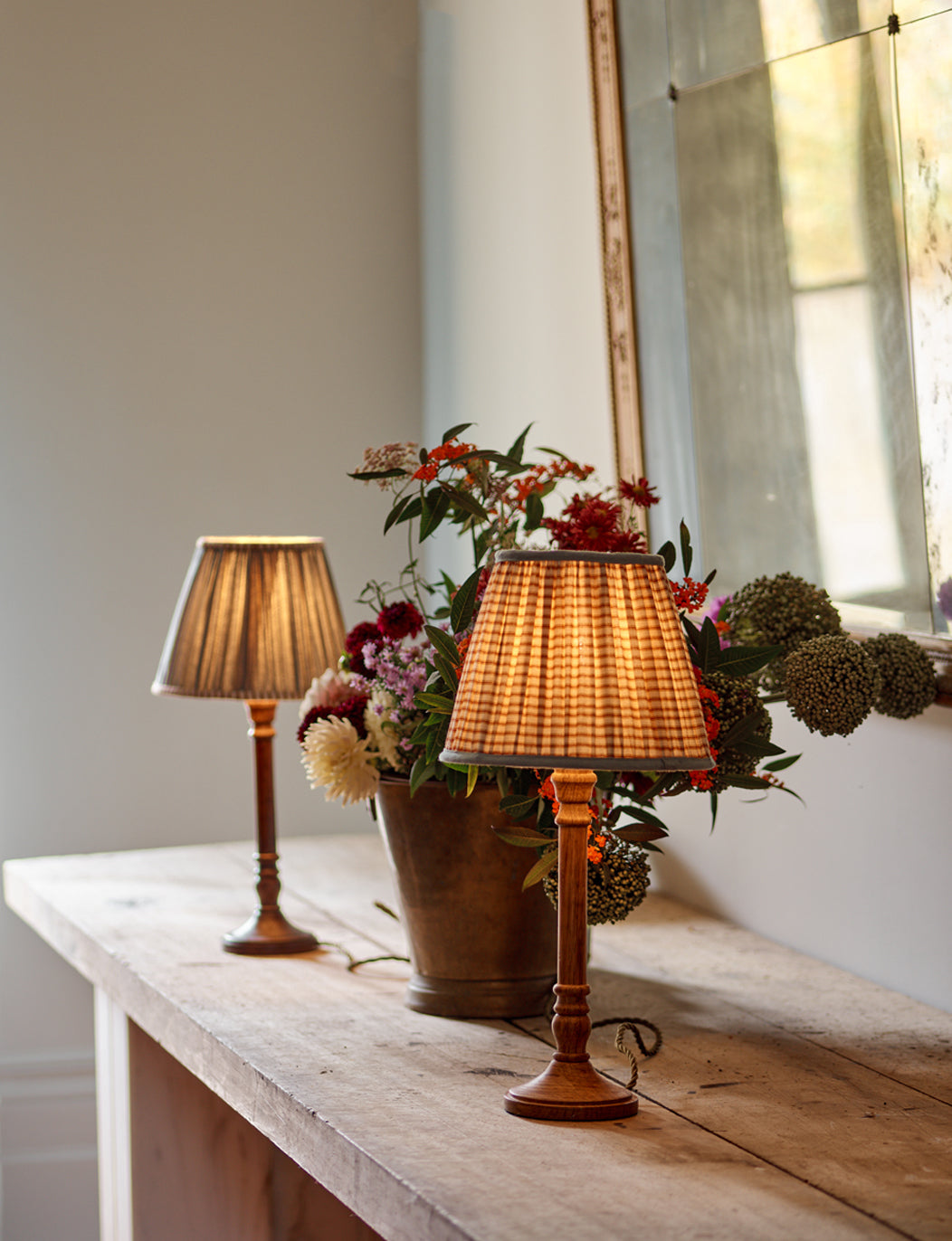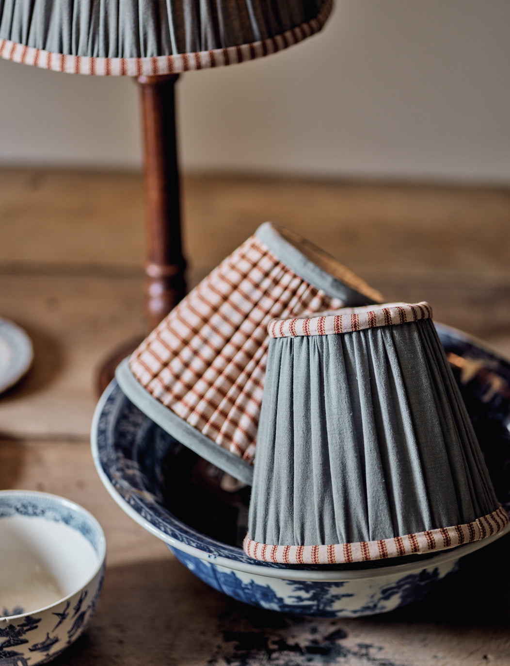 As the light shifts with the season, so we shift the ambience indoors too. New to our SS25 lighting collection are a playful medley of handmade cotton gathered lampshades in timeless stripes and tonal blues, designed to gently illuminate the soft haze of dawn and dusk.