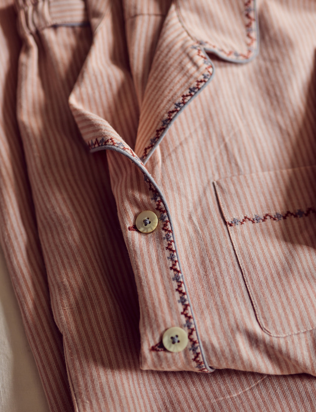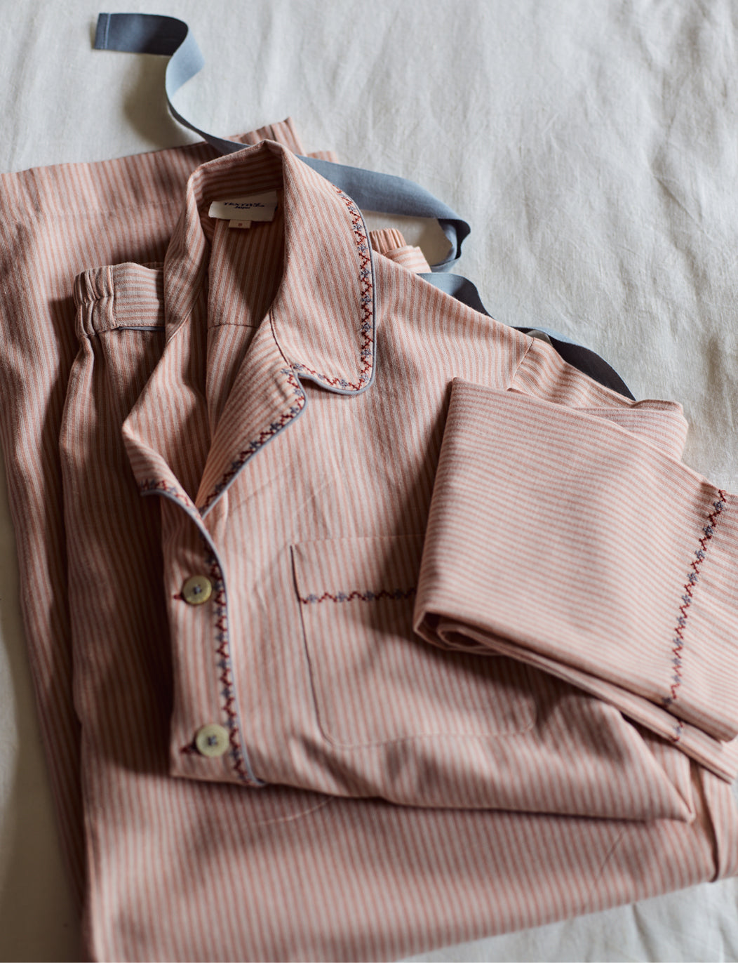 Another debut this Spring, sees our inaugural set of pyjamas. Crafted in classic cotton and adorned with hand-embroidered detailing, they make the perfect companions for moments of rest and relaxation.