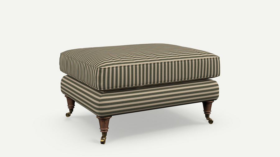 - Upholstered in a timeless heritage green and warm white stripe with subtle piping details