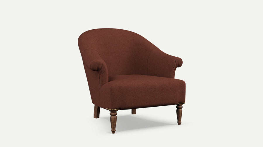 - Upholstered in a rich rust Belgian-grown, spun and woven linen