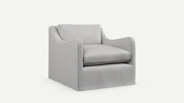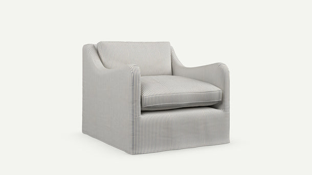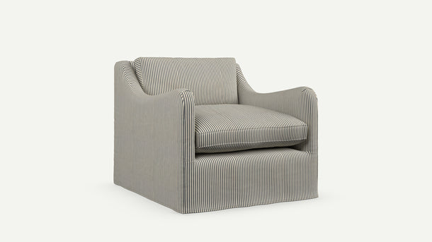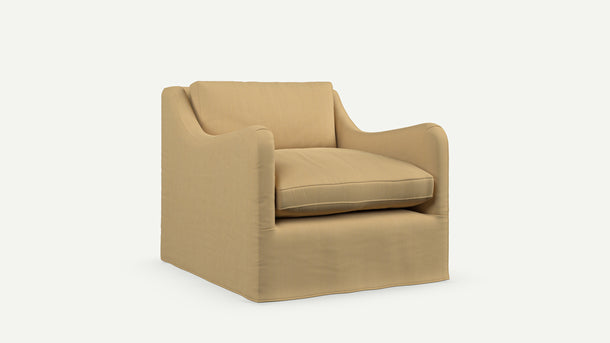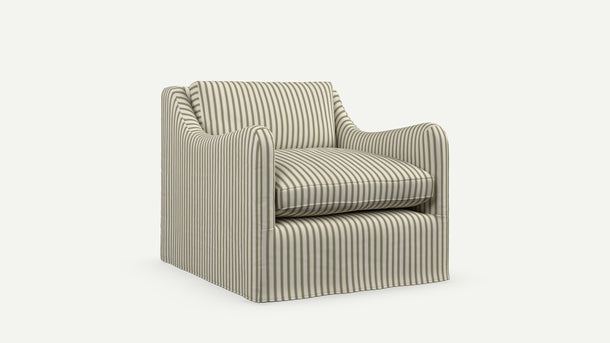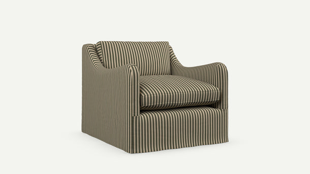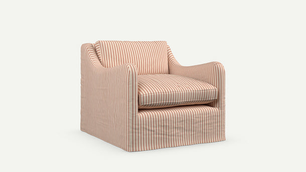 - A generously sized armchair which welcomes you with its gently splayed arms and cushioned backrest