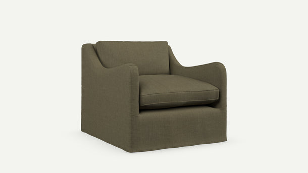 - Removable earthy green covers in Belgian-grown, spun and woven linen